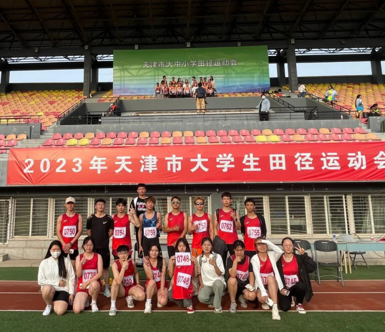喜报之四:2023年5月23日至25日天津市大学生田径运动会在天津财经大学举办。我院田径队队员经过艰苦训练,奋勇拼搏最终获得两金两银一铜的好成绩。