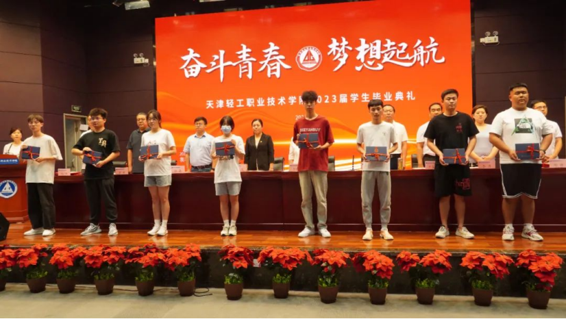 学院领导为2023届毕业生代表颁发“毕业证书”。