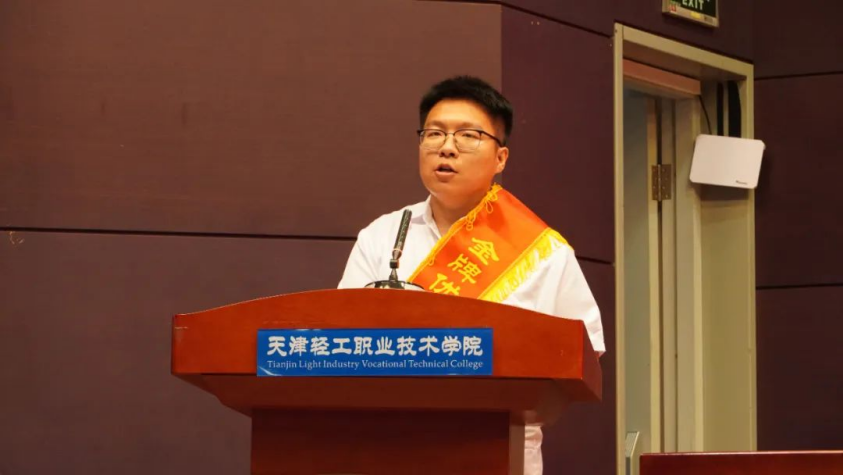往届毕业生代表2018级机械设计与制造1班孟伟同学发言。孟伟同学在发言中表示:正是有了在母校三年的学习经历,给了他足够的信心和决心,找到并从事着喜爱的工作,衷心祝愿轻工学院蓬勃发展,再书华章。