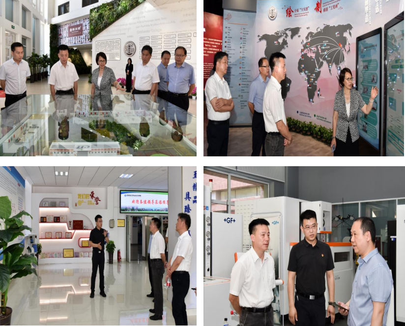 魏院长一行首先参观了鲁班工坊建设·体验馆,院长李云梅详细介绍了鲁班工坊的建设历程、内涵、成果等方面内容。随后,魏院长一行参观了精密模具协同创新中心,了解我院模具设计与制造专业群的整体建设情况及与瑞士GF、德国卡尔蔡司等世界知名企业开展校企合作的具体情况。