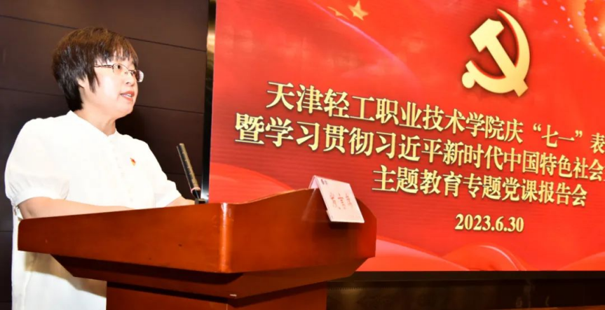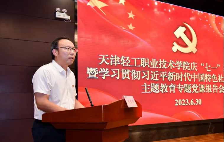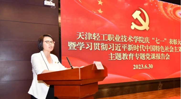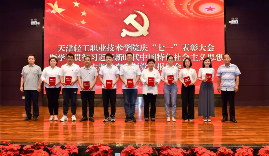在建党102周年来临之际,学院在6月30日召开了“七一”表彰大会,表彰先进、弘扬正气、树立典型,并结合学习贯彻习近平新时代中国特色社会主义思想主题教育,举办了一堂专题党课。学院领导班子成员、全体中层干部、全体党员以及学院党建共建单位津南区海棠街党工委、教科院职教研究中心党支部、圣纳科技有限公司党支部、海鸥集团工具装备厂厂党支部、津南区辛庄镇金地艺境社区党总支部、津南区海棠街知香园社区党支部、天津海尔洗衣机互联工厂党支部、天津职业技术师范大学职业教育教师研究院直属党支部等单位代表共200余人参加了会议。会议由党委副书记、副院长李子铮同志主持。
