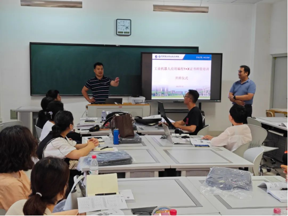 本次培训按照1+X证书制度试点工作要求,围绕工业机器人应用编程职业技能等级证书标准开展培训。通过培训,全面提高教师对1+X证书制度、工业机器人应用编程职业技能等级证书标准、教学与考核要求的理解,提高教师掌握实践教学重、难点的准确度。本次培训授课方式主要包括现场实操、研讨交流和案例分析等。