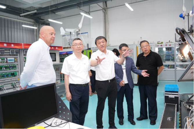 瑞士GF加工方案全球总裁Ivan Filisetti先生一行首先参观了我院电子信息与自动化学院与德国西门子,天津瑞能电器共建的风电机组控制实训室、上海三菱电梯公司华北大区培训基地、工业机器人实训室、新能源风光互补实训室等,之后参观了机械工程学院精密模具协同创新研发中心、模具智能制造生产线、精密测量实训室、史清卫国家级技能大师工作室等。Ivan Filisetti先生一行现场考察了解了瑞士GF的精密加工设备在我院开展实训教学、技术研发等情况,Ivan Filisetti先生对我院先进的实训条件表示充分肯定和赞赏。