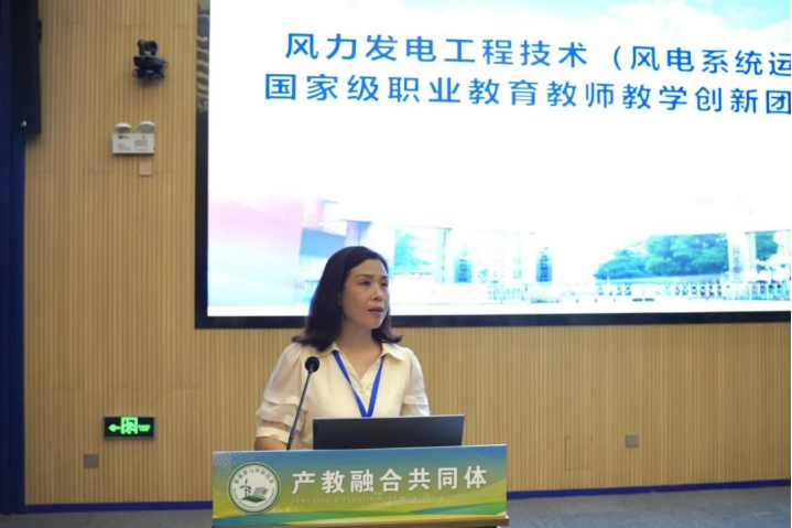 在新能源与环保行业产教融合共同体成立后,大会进入创新团队建设交流阶段。首先由两支已经通过验收的首批国家级职业教育教师教学创新团队分别做团结建设总结汇报。山东理工职业学院能源与材料工程学院院长岳耀雪教授从团队项目简介、建设规划与机制、建设方案落实与创新、建设成效、建设特色创新与成果推广、规划与展望六个方面做了汇报。湖南电气职业技术学院科研处处长罗小丽教授从基本情况、学校支持与保障、团队建设做法与成效、团队建设成果、团队建设特色与创新、团队建设后续思考六个方面做了汇报。