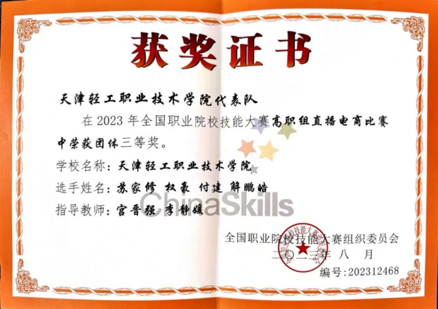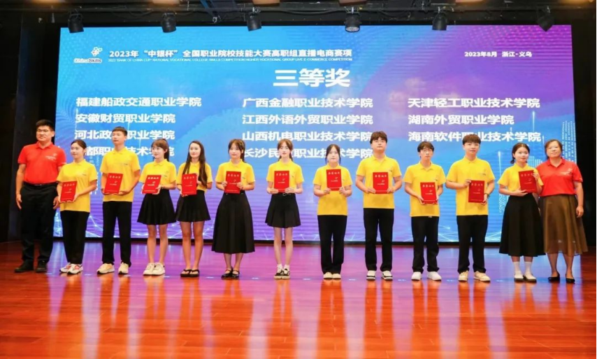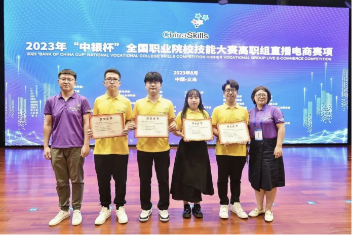 8月24日,2023年全国职业院校技能大赛(高职组)直播电商赛项在浙江义乌成功举办,此次比赛吸引了全国各省市自治区78支代表队参加。全国各地的优秀选手齐聚一堂,展开了一场激烈的角逐。我院电子商务专业2021级权豪、苏家修、付建、解鹏皓4位同学凭借扎实的技能水平,荣获该赛项全国三等奖的好成绩!
