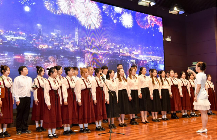 大会开始前,师生共同合唱《灯火里的中国》,欢庆教师节,为教师节献礼。
