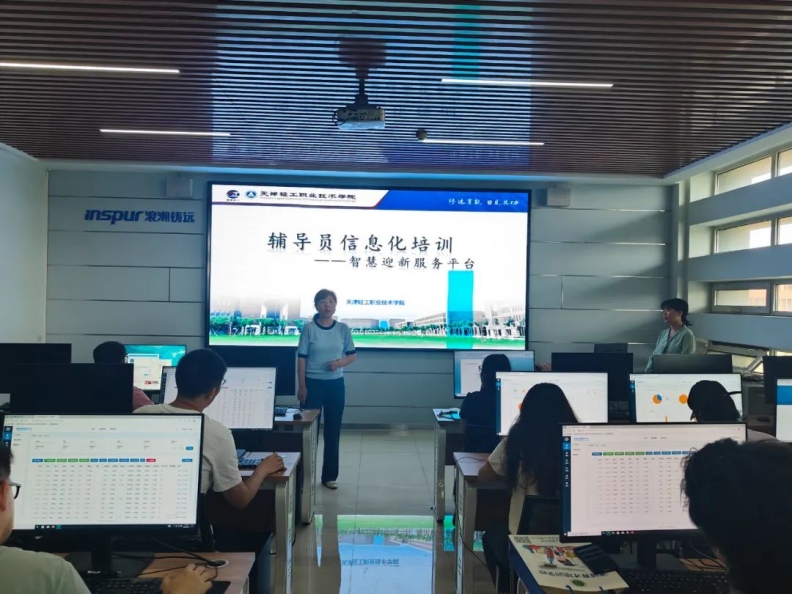 技术服务人员就“天津轻工职业技术学员智慧迎新服务平台”中涉及的录取确认、在线缴费、信息采集、现场报到等一系列新生入学环节进行全面介绍,为各环节的高效开展提供了信息化保障。