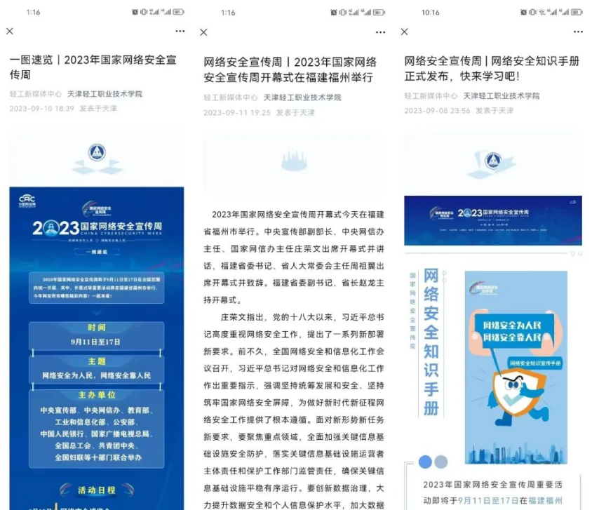 2023年9月11日至17日是以“网络安全为人民,网络安全靠人民”为主题的2023年国家网络安全宣传周,其中9月12日为校园日。学院网络安全和信息化办公室、党委宣传部、团委、党委学生工作部、学院各党支部积极组织教职员工和在校学生参加2023年国家网络安全宣传周活动。