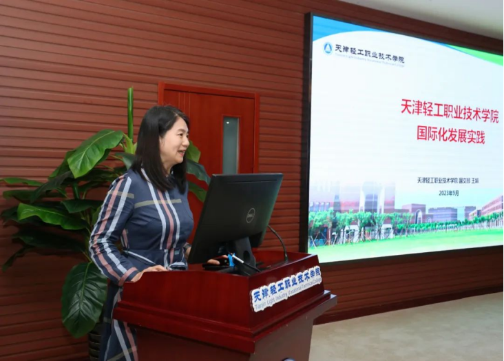 国际交流与合作部部长王娟作题为《新利18平台国际化发展实践》的专题报告,分别从学院国际交流基本情况简介、印度鲁班工坊建设、埃及鲁班工坊建设及其他重要国际交流项目四方面内容来分享。