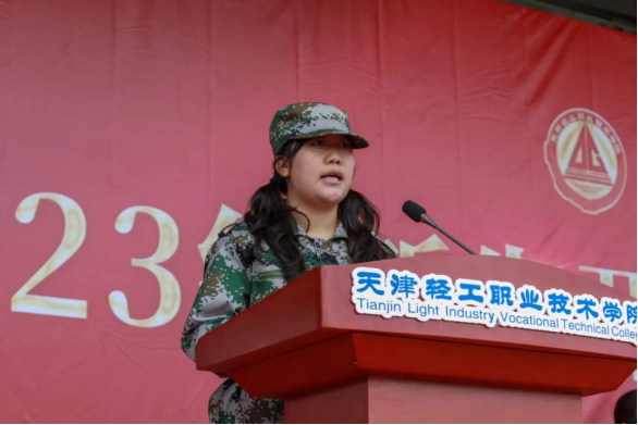 2023级新生代表蒋晓雪发言,她表示在新的人生阶段,我们要勤学善思,积极向上;同时还要有明确的目标,并且要深入实践。让母校因为有我们而自豪!
