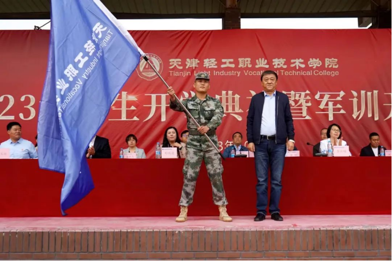 23级新生入校第一项学习任务就是军训。通过严格的军事训练提高政治觉悟,激发爱国热情,培养艰苦奋斗,刻苦耐劳的坚强毅力和集体主义精神,养成坚韧不拔的意志品质。学院党委书记戴裕崴向军训教官代表授旗。
