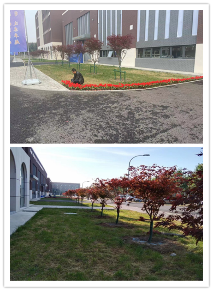 绿化团队把校园的花草树木提前修剪整枝,在校内摆放鲜花,补栽绿植,并在大赛赛场种植红杉树,让校园每一处都充满生机和活力。