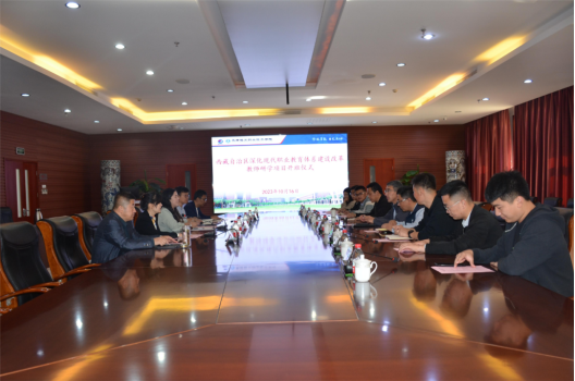 2023年10月16日上午,西藏自治区深化现代职业教育体系建设改革教师研学项目开班仪式在新利18平台第一会议室举行。该项目是由西藏自治区教育厅发起,我院承接,旨在形成紧密对接产业链、创新链的专业体系,为西藏经济社会发展培养靠得住、用得上的高素质技术技能型人才。西藏职业技术学院党委委员、副院长徐斌,新利18平台副院长刘悦凌,昌都市职业技术学校校长吴英,日喀则高职院筹备组市职招就处主任刘跃军,林芝市职业技术学校教务科副科长谈峰涛等出席开班仪式。学校相关部门负责同志及专业教师参加会议。会议由校企合作与培训部部长白洁主持。