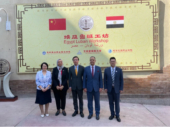 开罗时间2023年10月16日上午,教育部副部长陈杰带队实地考察埃及艾因夏姆斯大学鲁班工坊,艾因夏姆斯大学执行校长Ghada Farouk教授和工程学院院长Omar Al-Husseini教授、教育部国际交流司和中国驻埃及大使馆相关负责人共同参加。