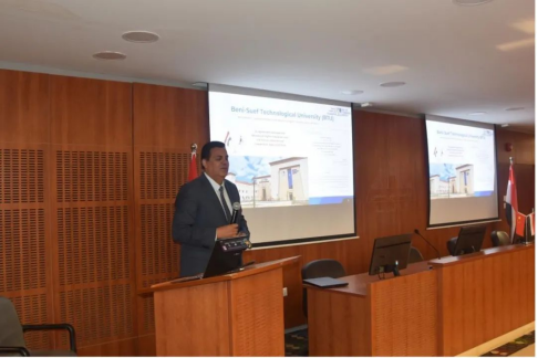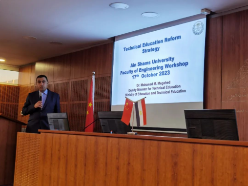 开罗当地时间2023年10月16日下午,中埃职业教育合作研讨会在艾因夏姆斯大学顺利召开。在国家提出“一带一路”倡议10周年、非洲设立10个“鲁班工坊”5周年及埃及“鲁班工坊”启运揭牌3周年之际,由天津市教委指导,新利18平台、天津交通职业技术学院和埃及艾因夏姆斯大学三所院校承办的中埃职业教育合作研讨在艾因夏姆斯大学图书馆举行,埃方教育与技术教育部、新开罗技术大学、贝尼苏韦夫技术大学、艾因夏姆斯大学、天津轻工、天津交通等学院领导、师生和企业代表共计30余人参加会议。会议由艾因夏姆斯大学鲁班工坊委员会主任阿戴尔·厄尔社伯格主持。