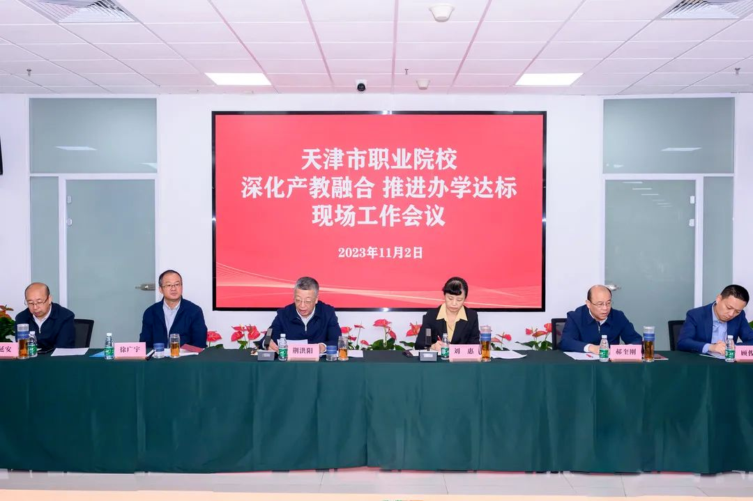 2023年11月2日,天津市教委在天津滨海汽车工程职业学院武清校区召开全市职业院校深化产教融合推进办学达标现场工作会,市委教育工委常务副书记、市教委主任荆洪阳,市教委副主任徐广宇、郝奎刚、罗延安,武清区委书记刘惠,副区长顾俊魁出席了会议。全市高职院校、中职学校、武清区教育局、京津电子商务产业园、武清区有关企业参加会议。