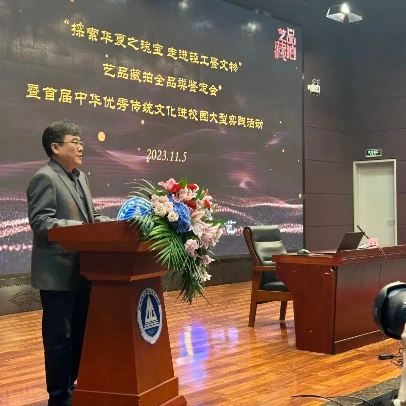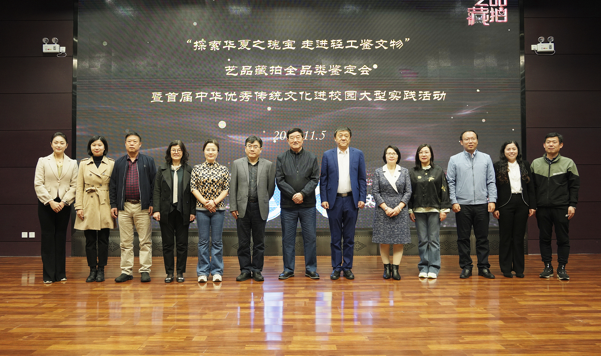 中华文化发展繁荣是中华民族伟大复兴的重要条件,保护历史文物是传承中华优秀传统文化的必然要求。为深入贯彻习近平总书记关于教育工作和文物工作的重要论述和指示批示精神,落实中共中央办公厅、国务院办公厅《关于让文物活起来扩大中华文化国际影响力的实施意见》要求,着力提高青年学生思想道德素养和科学文化素质,根据教育部、国家文物局和市委、市政府“让文物活起来”工作部署,11月5日,我院携手天津电视台文艺频道《艺品藏拍》栏目举办“探索华夏之瑰宝 走进轻工鉴文物”艺品藏拍全品类鉴定会暨首届中华优秀传统文化进校园大型实践活动。南开大学讲席教授(原南开大学常务副校长)陈洪,天津海河教育园区管委会副主任詹珽、教育改革部副部长魏楠,天津海河传媒中心文艺频道总监、天津天视文艺传媒有限责任公司董事长梁新尧、副总经理彭靖,海棠街道办事处副主任谢长杰,学院党委书记戴裕崴、院长李云梅,党委副书记、副院长李子铮,副院长刘悦凌等领导及近五百名师生出席活动。