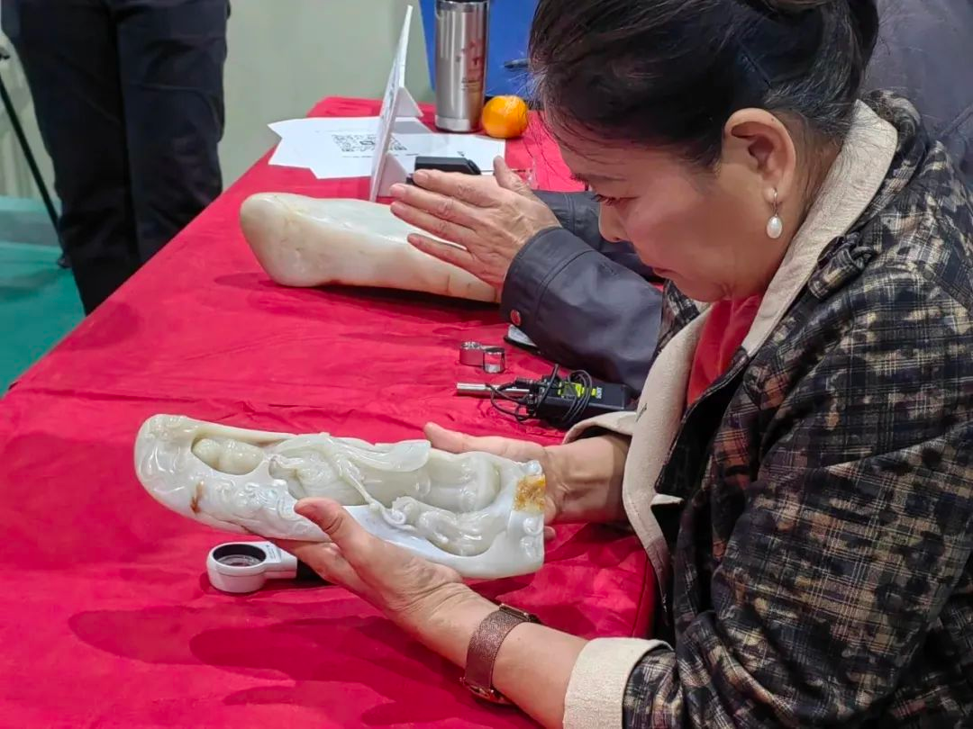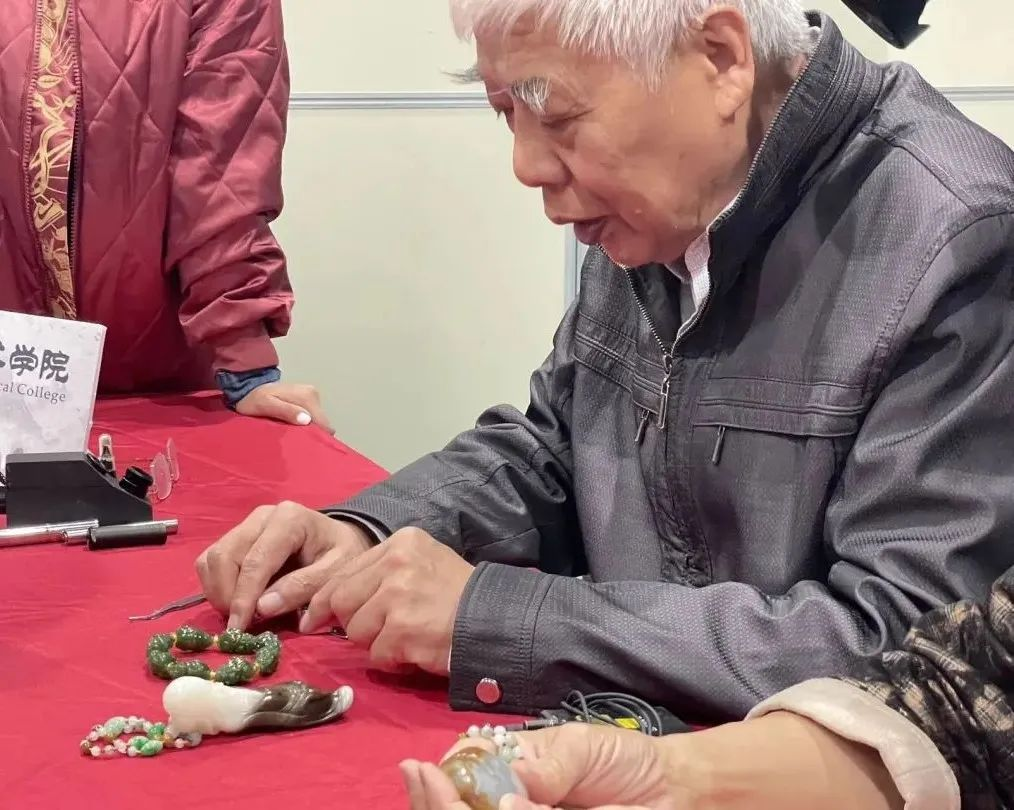 本次鉴宝还有宝玉石类藏品,宝玉石颜色鲜艳柔和,光泽和花纹美观,结构均匀,折光率强。赵彦明老师为同学们深情讲解,更加丰富了同学们的宝玉石知识构成。