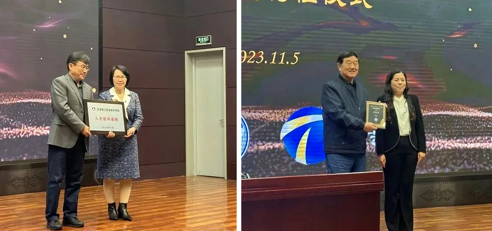 学院院长李云梅与天视传媒董事长梁新尧共同为共建人才培养基地进行授牌;学院副院长刘悦凌为陈洪教授颁发学院特聘教授证书。