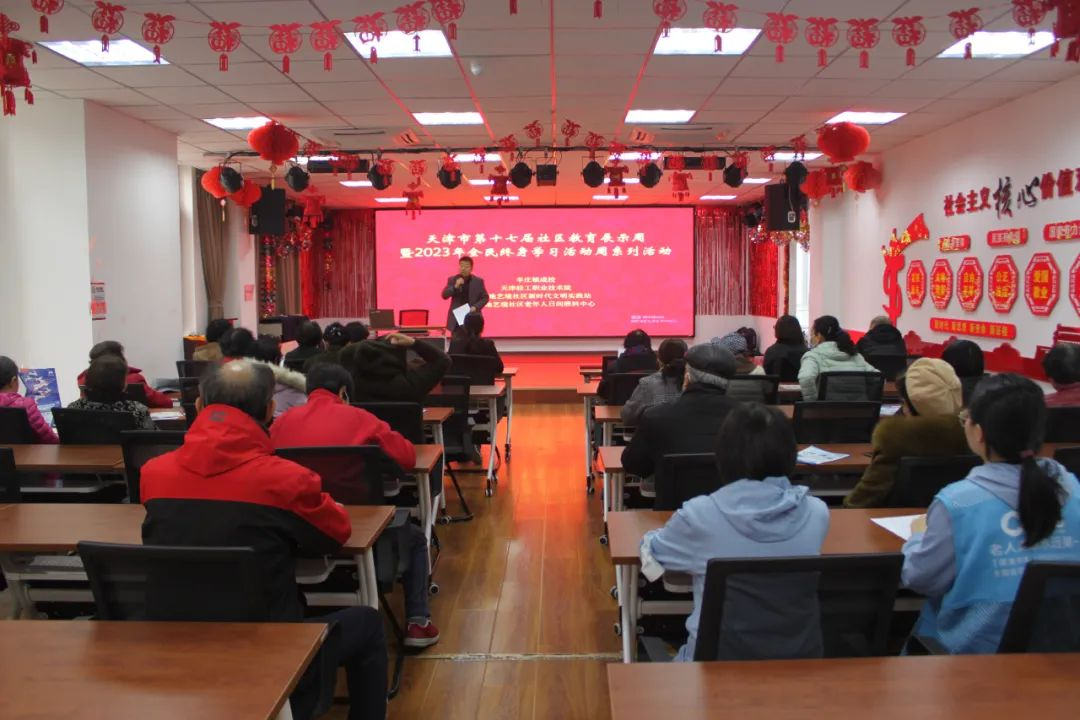 活动中,学院教师还为居民进行了“老年人日常消防安全知识”讲座及学院“天津市第十七届社区教育展示周暨2023年全民终身学习活动周”特色活动介绍。