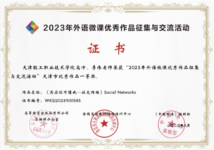 我院教师精心设计制作的微课作品《其实你不懂我—社交网络》Social Networks聚焦学生日常生活中的社交网络使用,通过英语微课呈现语言表达,增强学生自主学习能力,使学生在今后学习、工作和社会交往中能用英语有效进行交际。同时注重学生的思想引领,通过课程思政微课引导学生正确使用社交网络,注意网络安全,平衡好社交网络与真实生活。