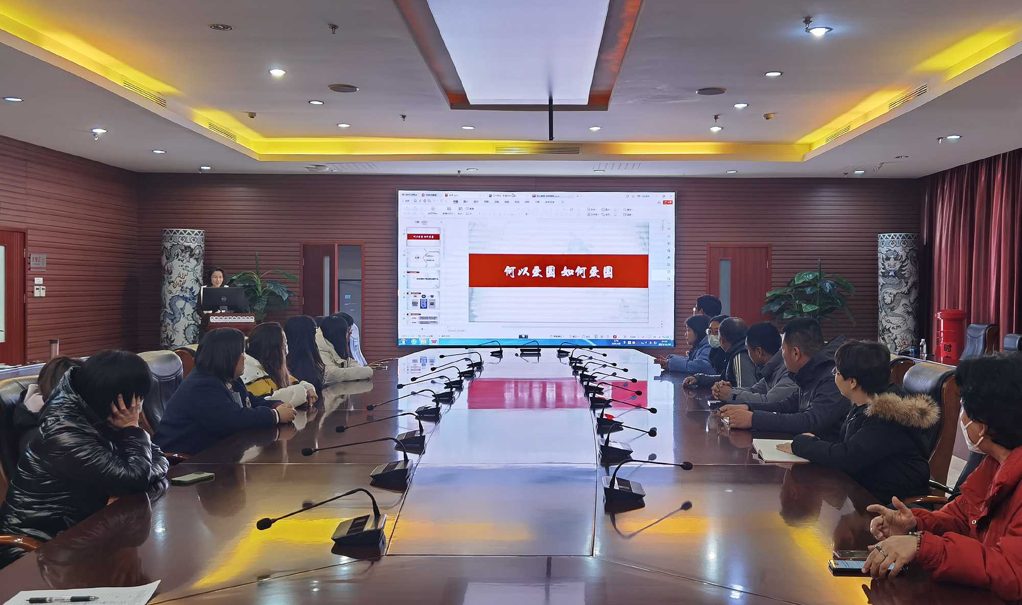 为深入学习贯彻党的二十大精神,贯彻落实中共中央、国务院《关于新时代加强和改进思想政治工作的意见》和中共中央办公厅、国务院办公厅印发的《关于深化新时代学校思想政治理论课改革创新的若干意见》等文件精神,构建“大思政”育人格局,提升思政育人的教学实效,11月28日,马克思主义学院联合学工部共同打造“弘扬爱国主义”集体备课会,此次集体备课会由马克思主义学院顾丽雅和吴楠两位老师主讲,我院辅导员代表参加。