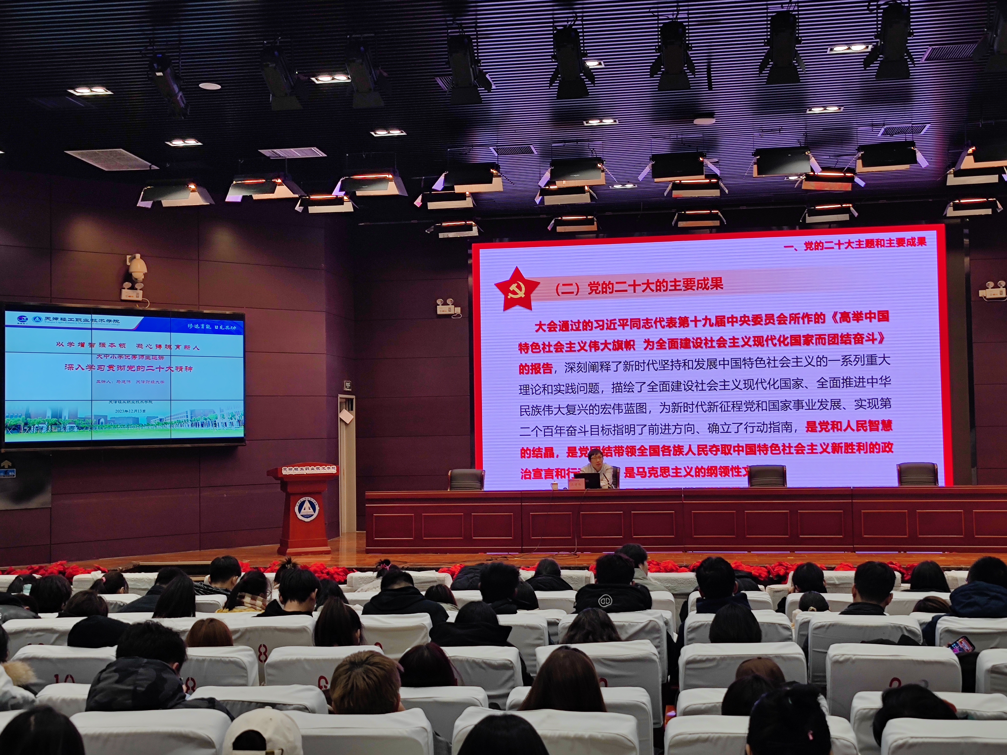 为深入贯彻落实党的二十大精神,引导学生深刻领会党的二十大精神的重要意义,深化爱党爱国爱社会主义爱人民教育,以良好的精神风貌学习贯彻党的二十大精神。学院邀请到了巡讲团优秀辅导员代表马建伟老师于12月13日下午在学院报告厅开展专题讲座。讲座由党委学生工作部部长马延宏主持。