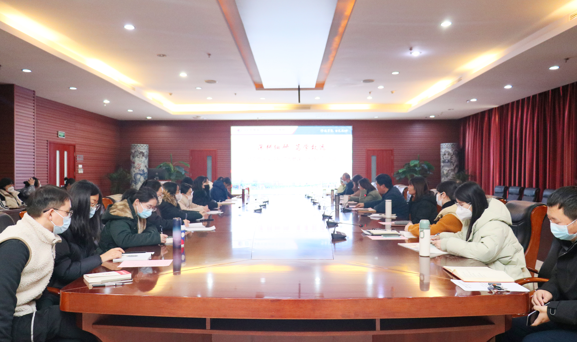 岁末年头,郑文柱对马克思主义学院2023年各项工作进行了针对性梳理和总结,肯定了成绩、查找了不足、明确了努力方向。他强调,全体思政教师要及时总结经验,注重理论武装,一是要深入学习贯彻落实习近平总书记“3·18”重要讲话精神,贯彻“大思政”教学理念,做到常学常新、温故知新,用党的最新理论成果武装头脑、指导实践、推动工作;二是要调研先行,把学生心目中的思政课讲深、讲透、讲活,要贴近学生、贴近校园生活、以鲜活的案例为学生答疑解惑、启智润心;三是要担负起思政课是立德树人根本任务关键课程的使命,持续深化思政课建设的创新发展,努力打造“思想有高度、理论有深度、历史有厚度、案例有信度、情感有温度、表达有力度”的思政课,推动思政课内涵式发展,进一步在教育教学工作中凝聚共识,切实提升思政课的思想性、理论性和亲和力、针对性,以高质量思政课程建设助力学院高质量发展。