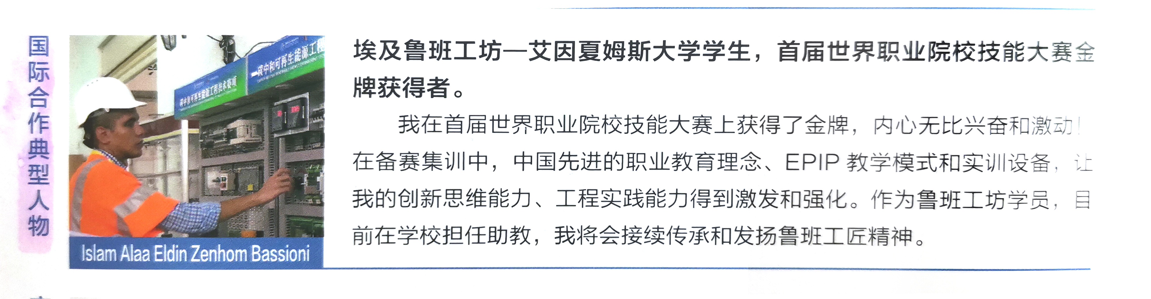 埃及鲁班工坊——艾因夏姆斯大学学生入选国际合作典型人物