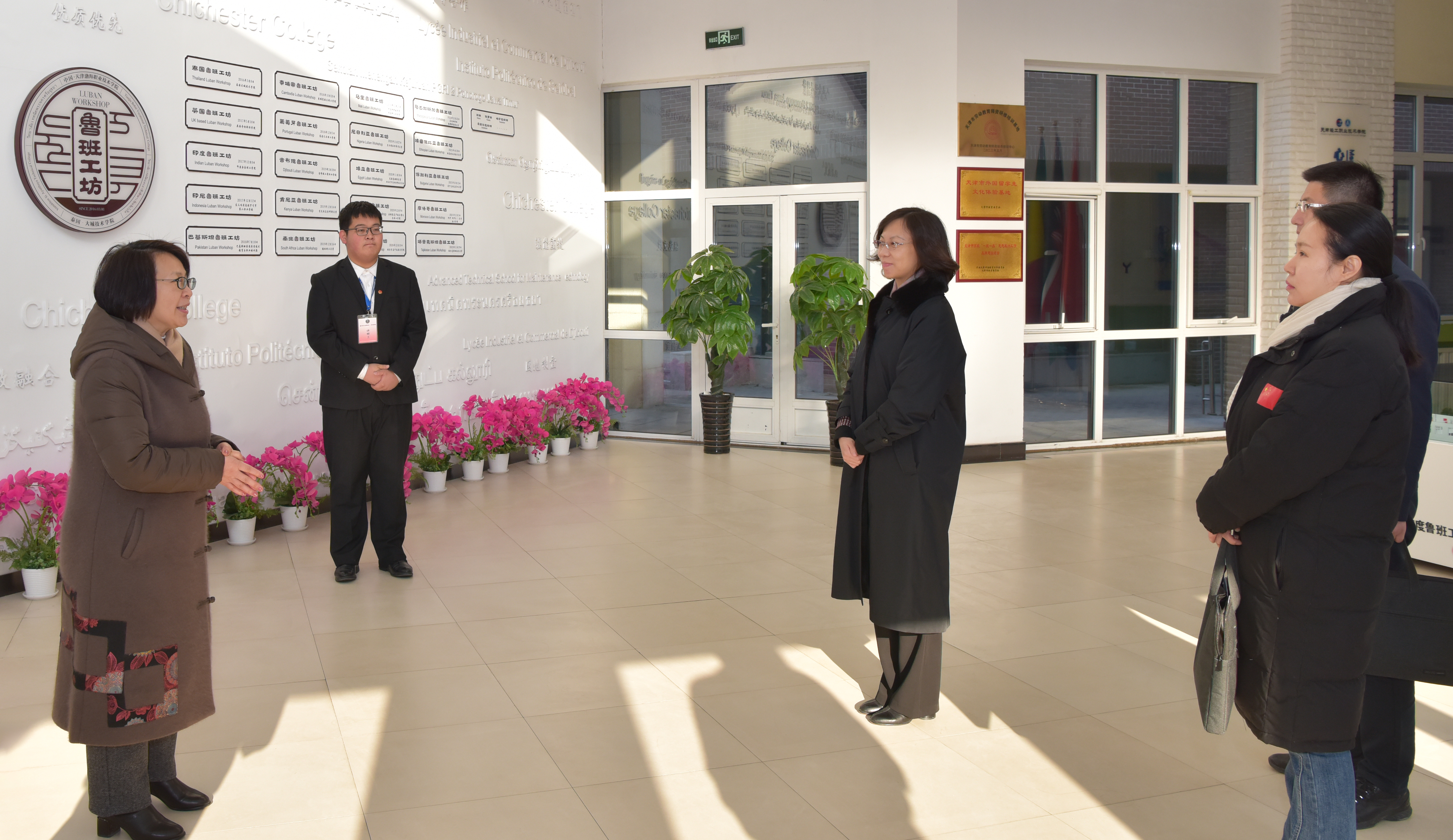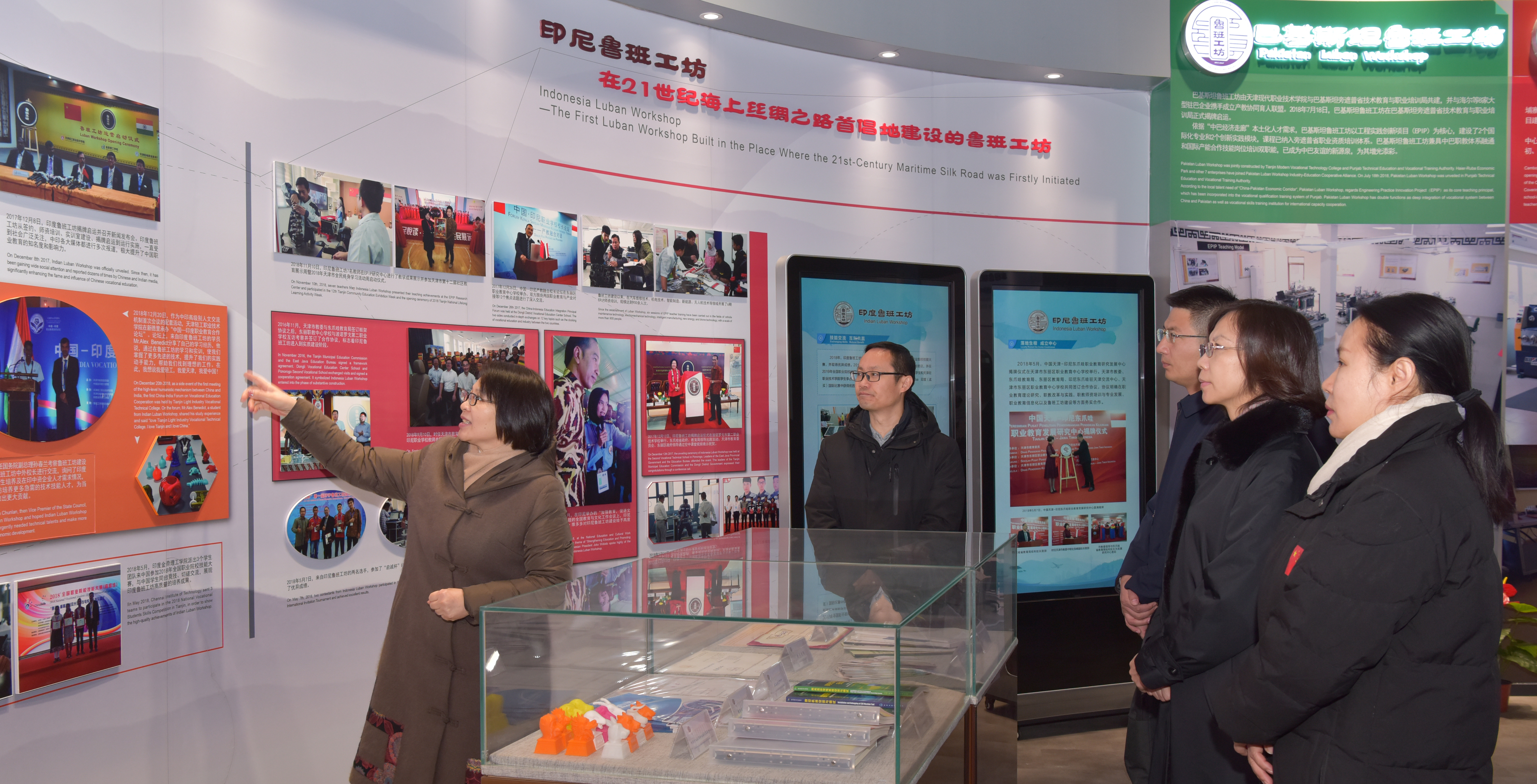 调研组一行首先参观了鲁班工坊建设·体验馆,深入了解了鲁班工坊建设的重要节点和标志性成果,以及近年来天津职业教育在国际化方面所取得的显著成效。