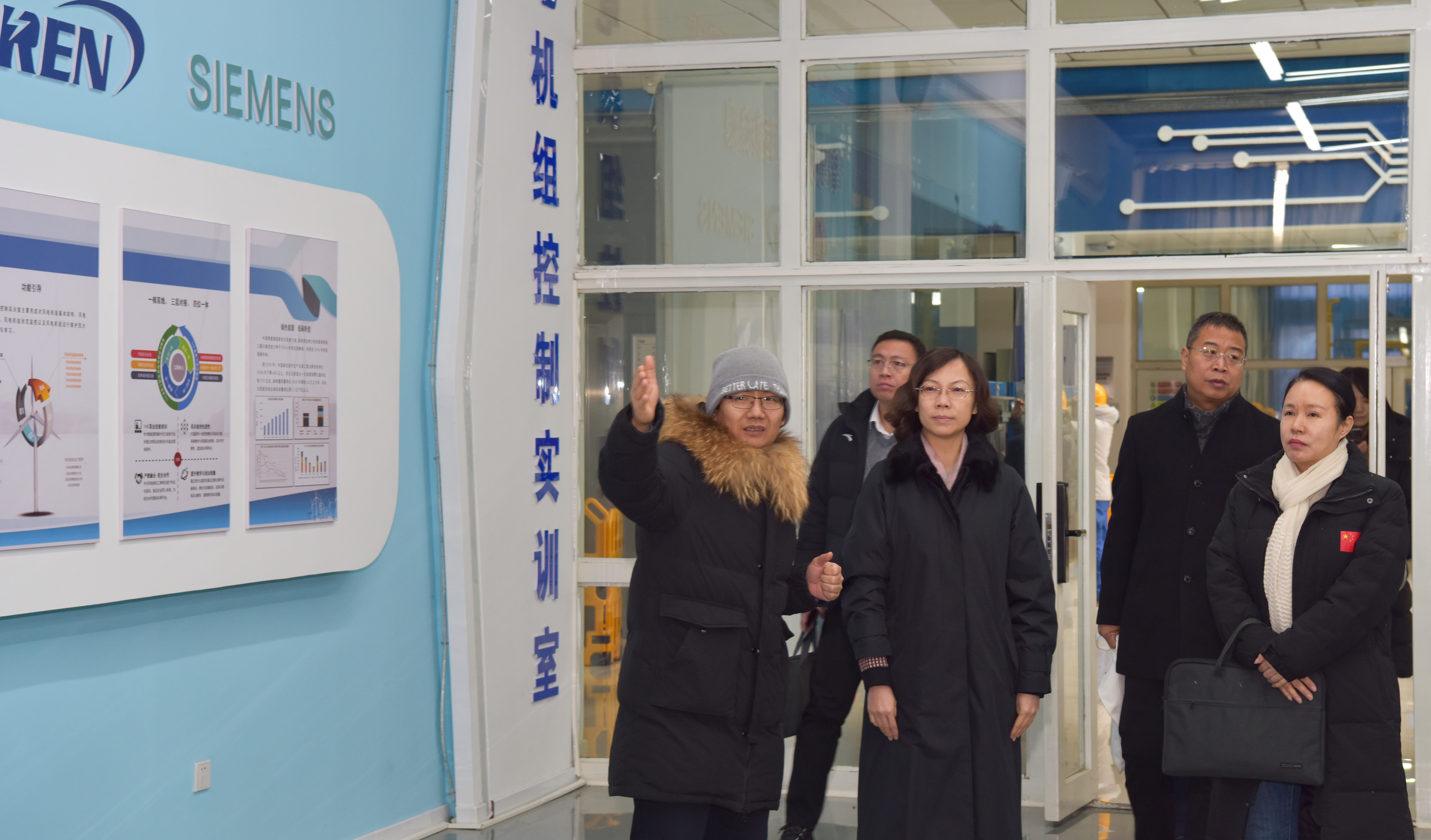 最后,调研组一行调研了新能源未来教室、风电机组控制实训室、三菱电梯华北大区电梯实训基地等实训室,重点了解了学院新能源专业群的建设成效,以及学院与中国长江三峡集团有限公司、南开大学牵头,联合行业组织、学校、科研机构、上下游企业等150余家单位,共同组建全国首个新能源行业产教融合共同体的具体情况。