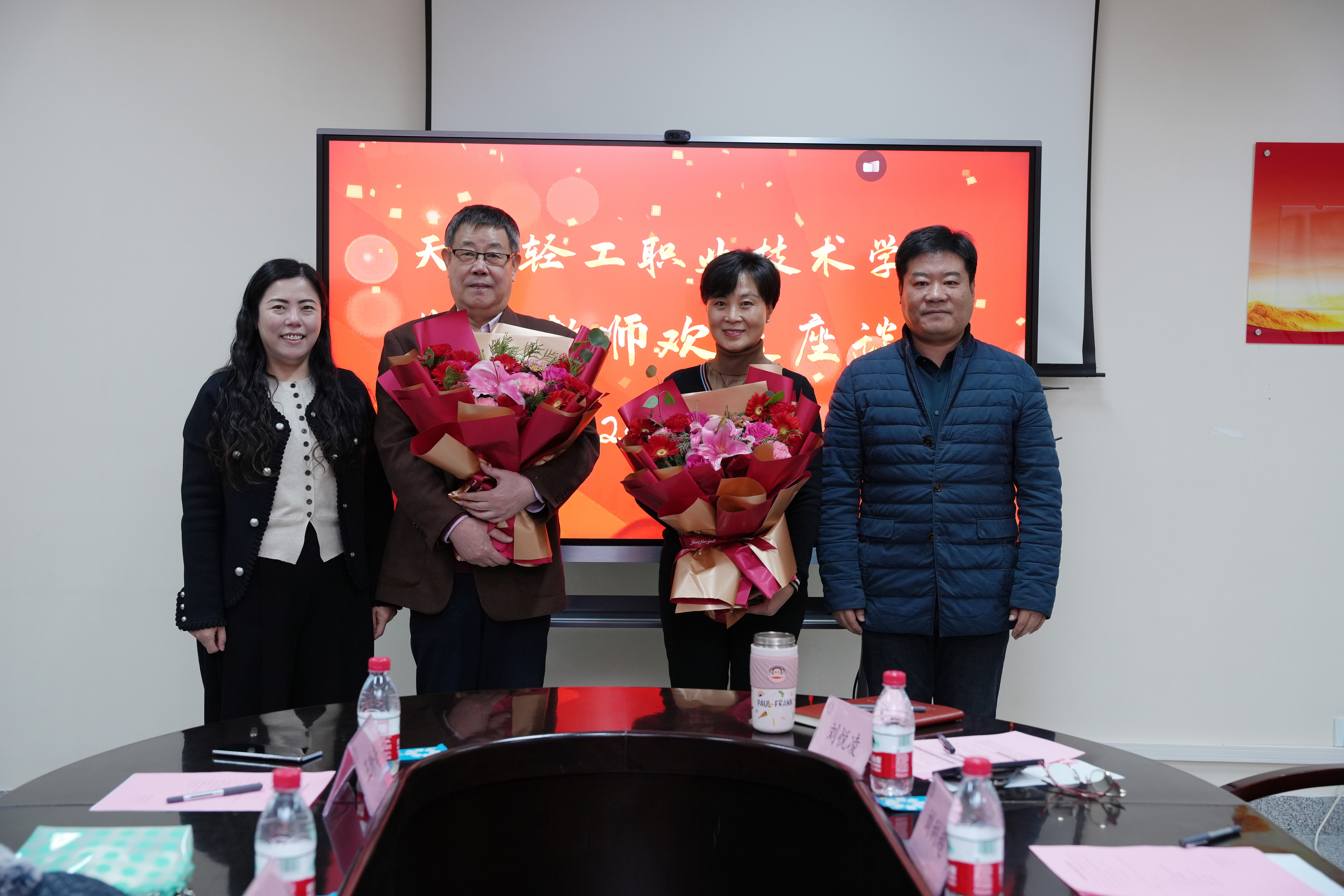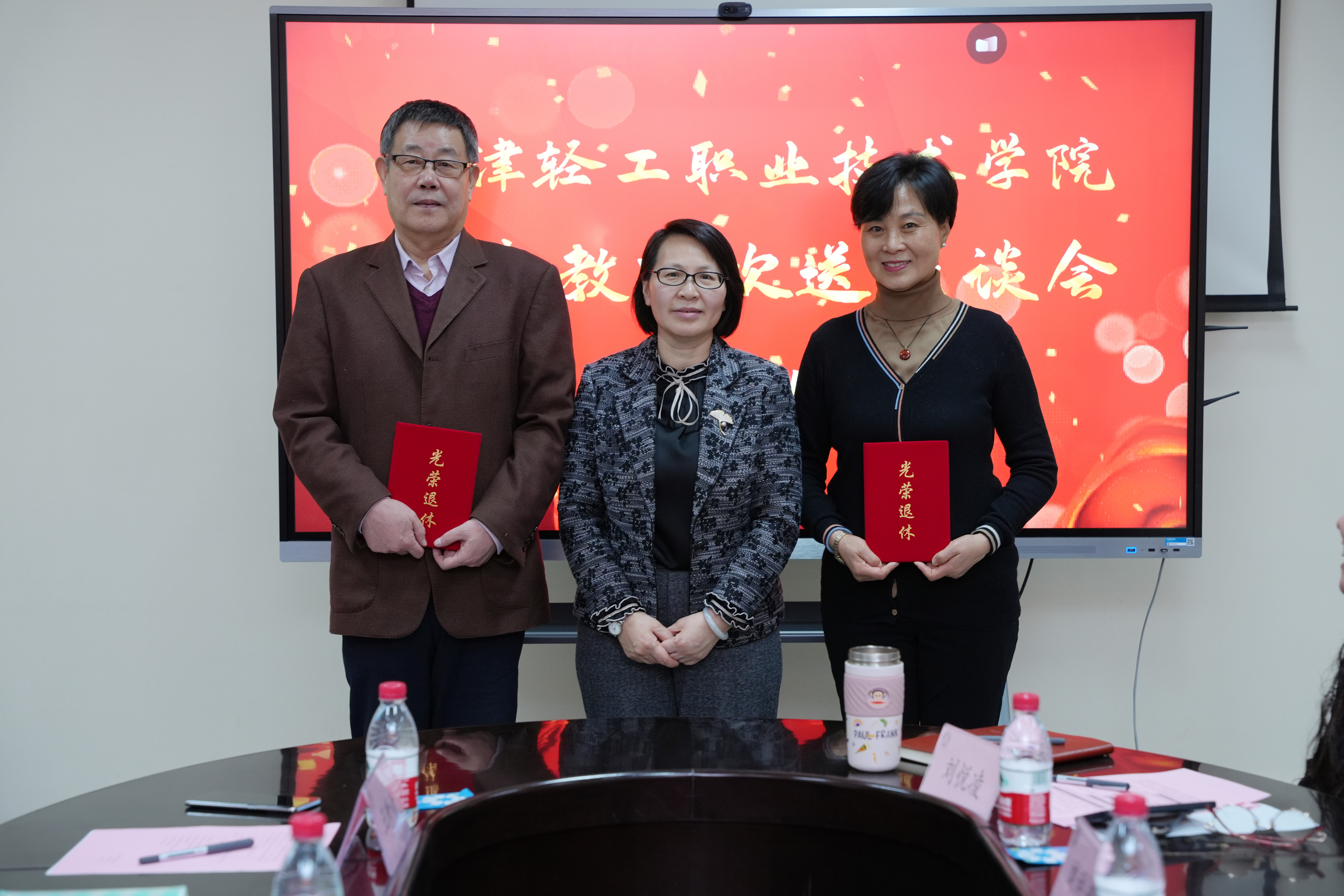 党委教师工作部部长王宝龙、电子信息与自动化学院党总支书记王珍奇、图书资料中心主任孙盛兰为荣休教师送去祝福
