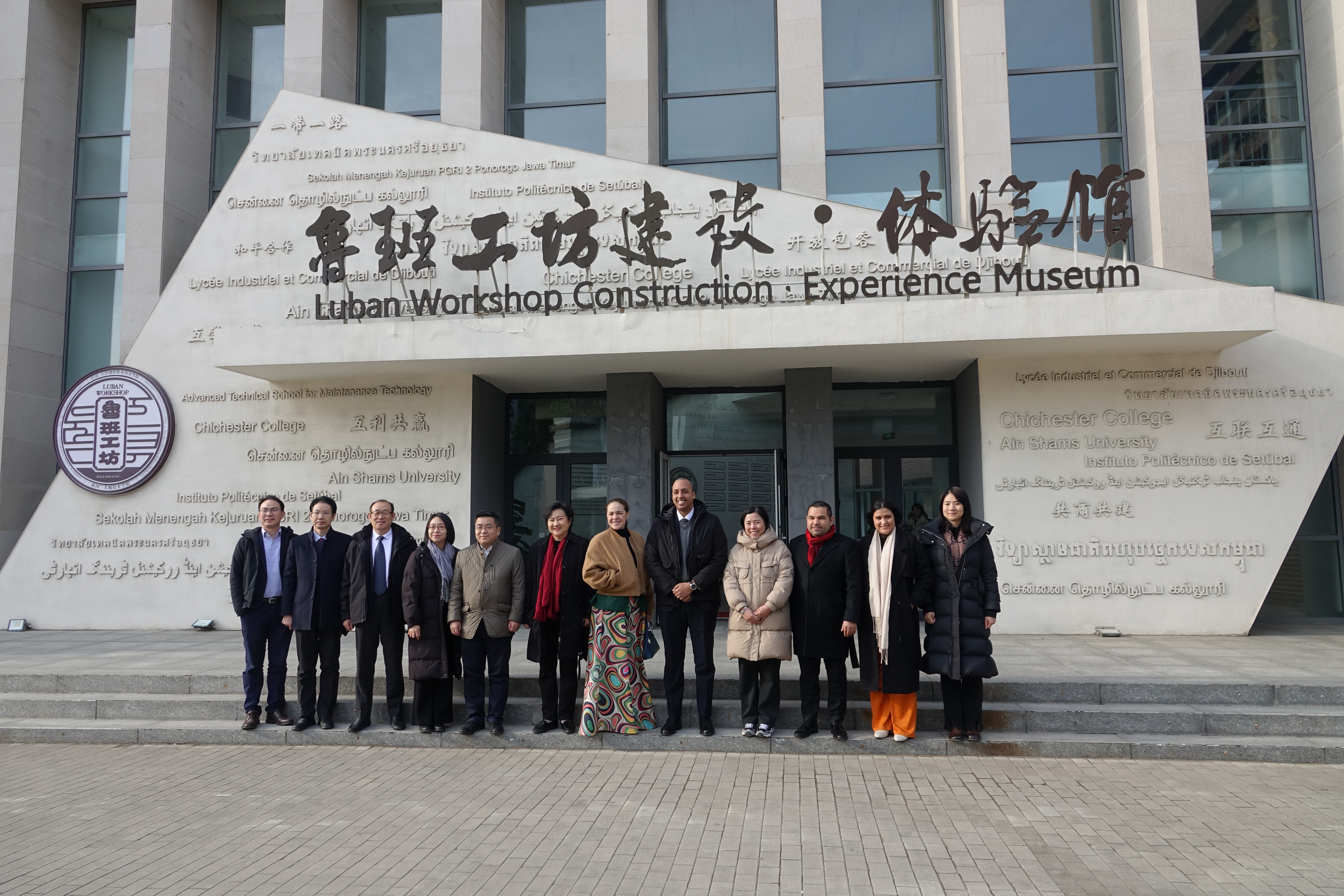 尼驻华大使迈克尔·坎贝尔一行首先参观了鲁班工坊建设·体验馆,详细了解了鲁班工坊的建设历程、核心内涵、师资建设、人文交流及相关标志性成果等情况。新利18平台副院长刘悦凌针对重点鲁班工坊的建设概况作了详细讲解,并指出,鲁班工坊建设·体验馆集中展现了鲁班工坊的建设历程和成效,全方位展示了天津服务“一带一路”建设、推动优质职业教育走出去、深化中外人文交流取得的优秀成果。尼驻华大使迈克尔·坎贝尔对鲁班工坊建设给予高度评价,并自豪指出鲁班工坊也将在尼加拉瓜建成,对鲁班工坊培训高端技术技能人才,服务当地经济社会发展充满期待。