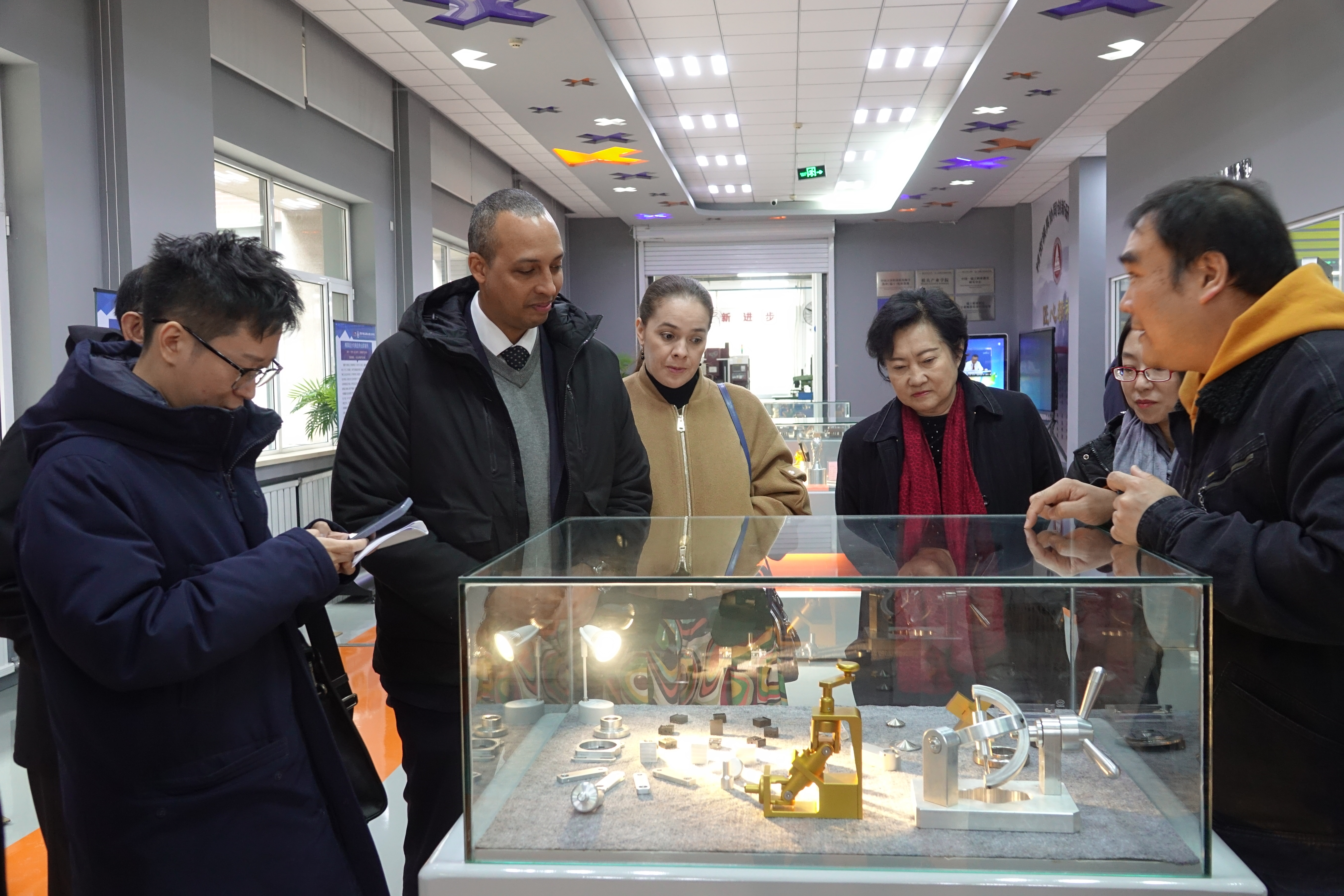 1月19日下午,尼加拉瓜驻华大使迈克尔·坎贝尔一行4人莅临新利18平台鲁班工坊建设·体验馆和精密模具协同创新中心调研交流。全国工商联国际合作委员会副主任及北京融商“一带一路”法律与商事服务中心理事长王丽、北京融商“一带一路”法律与商事服务中心秘书长贾辉、北京德恒律师事务所合伙人李恺奇、北京融商“一带一路”法律与商事服务中心国际部副主任王诗萌及天津市人民政府外事办公室相关领导陪同调研,新利18平台副院长刘悦凌及相关部门负责同志接待此次来访。