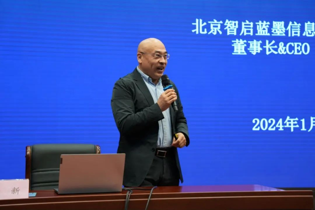靳新董事长以《基于知识图谱的专业课程、教材一体化建设》为主题,介绍了数字教材一体化服务体系、AI数字教材体系,探究知识图谱为云教材建设带来便利,实现了教与学交互模式,开阔了学院教师的视野。