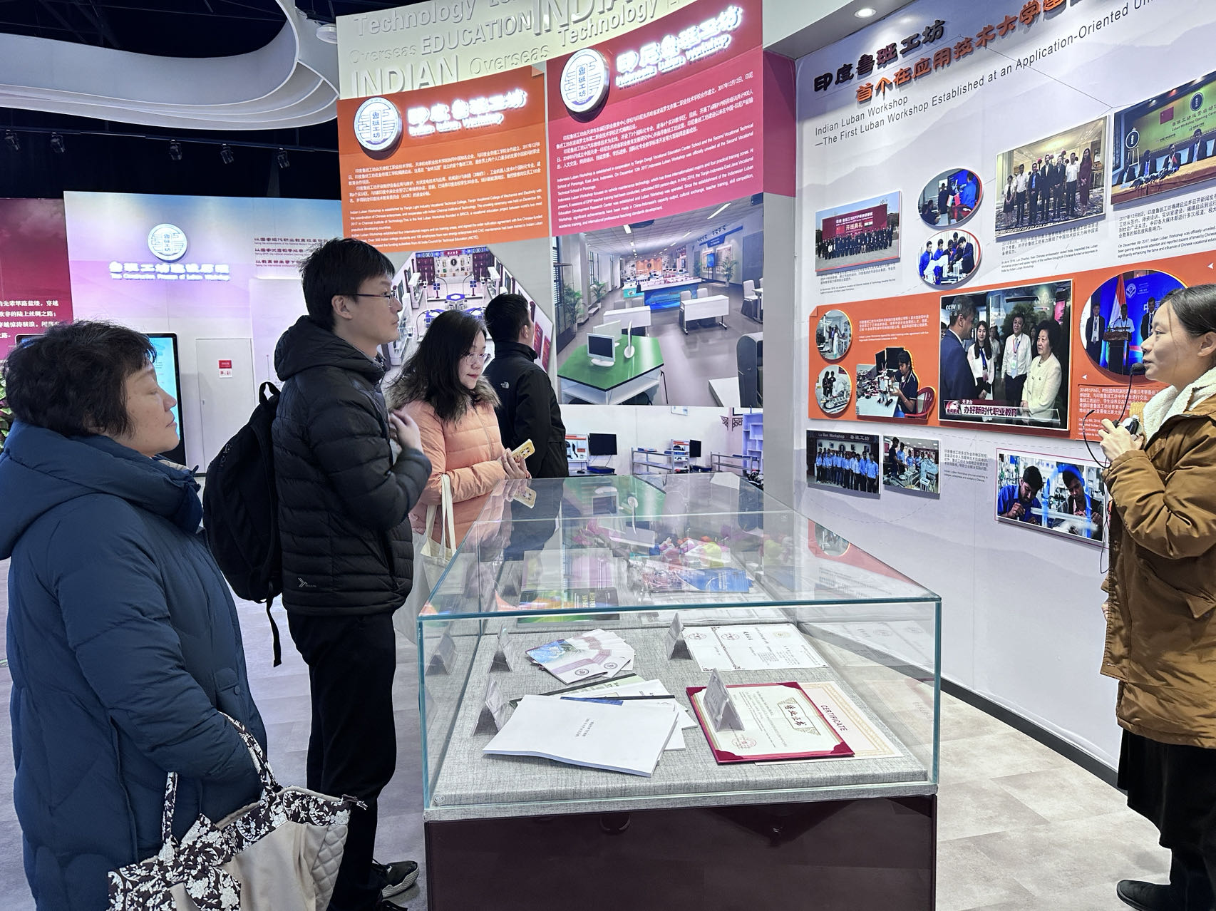 会后,南开大学一行4位专家参观了鲁班工坊建设·体验馆,详细了解了鲁班工坊的建设历程、核心内涵、师资建设与人文交流等情况。随后参观了机械工程学院精密模具协同创新中心和电子信息与自动化学院新能源未来教室、风电机组控制实训室,重点了解了学院新能源专业群的建设成效。