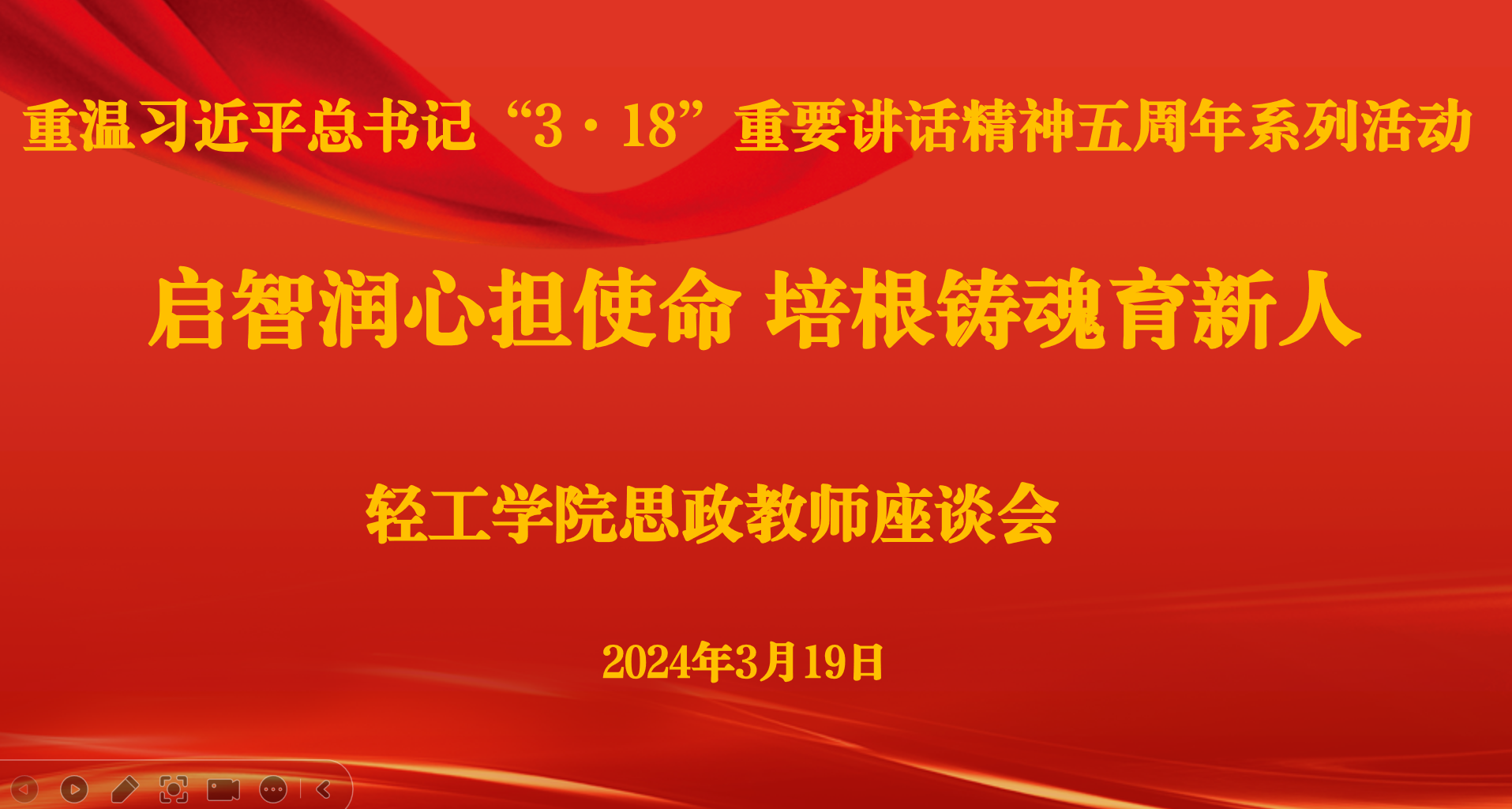 时值习近平总书记在学校思想政治理论课教师座谈会发表重要讲话五周年之际,新利18平台于3月19日下午开展“启智润心担使命,培根铸魂育新人”思政教师座谈会,重温“3·18”重要讲话精神。