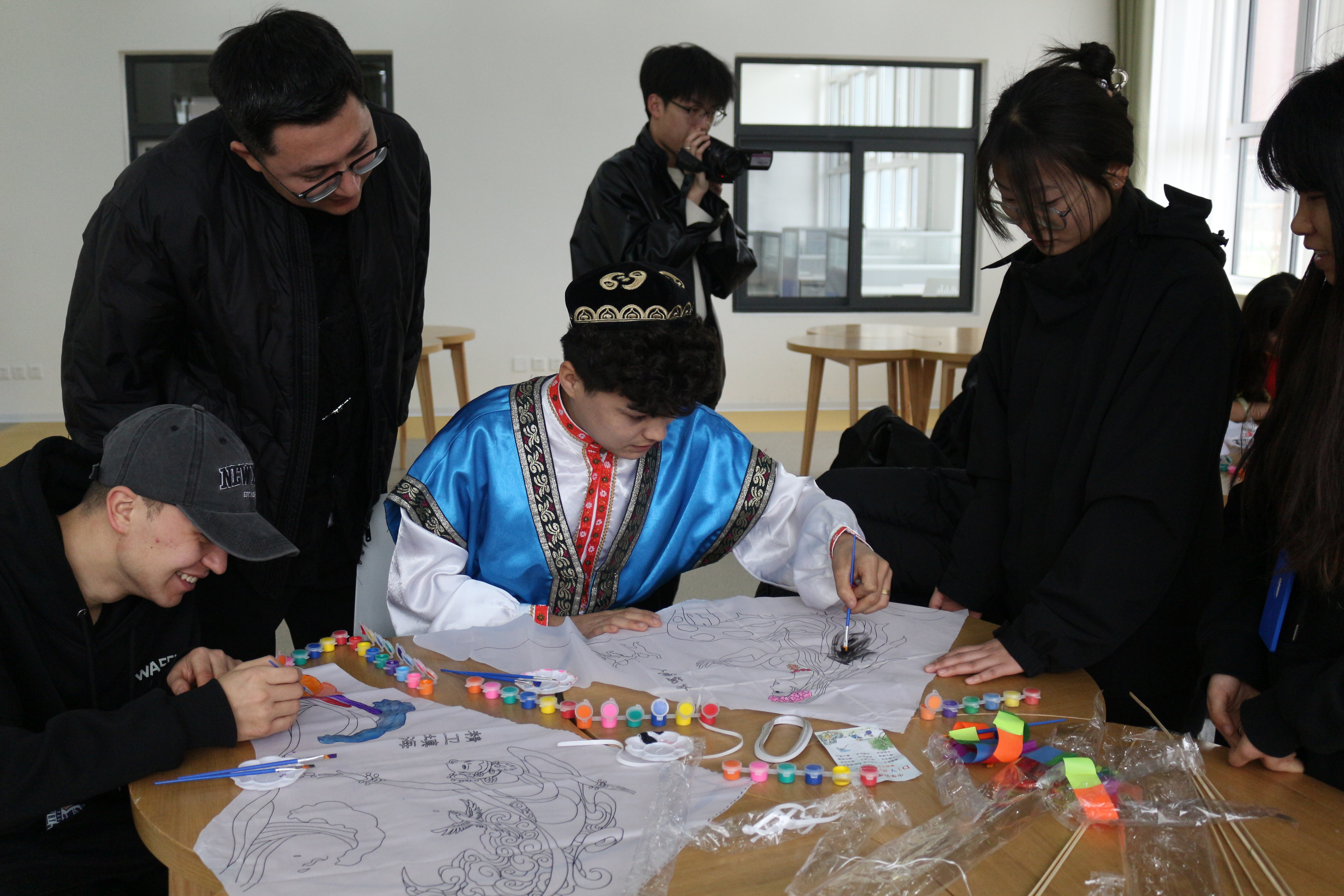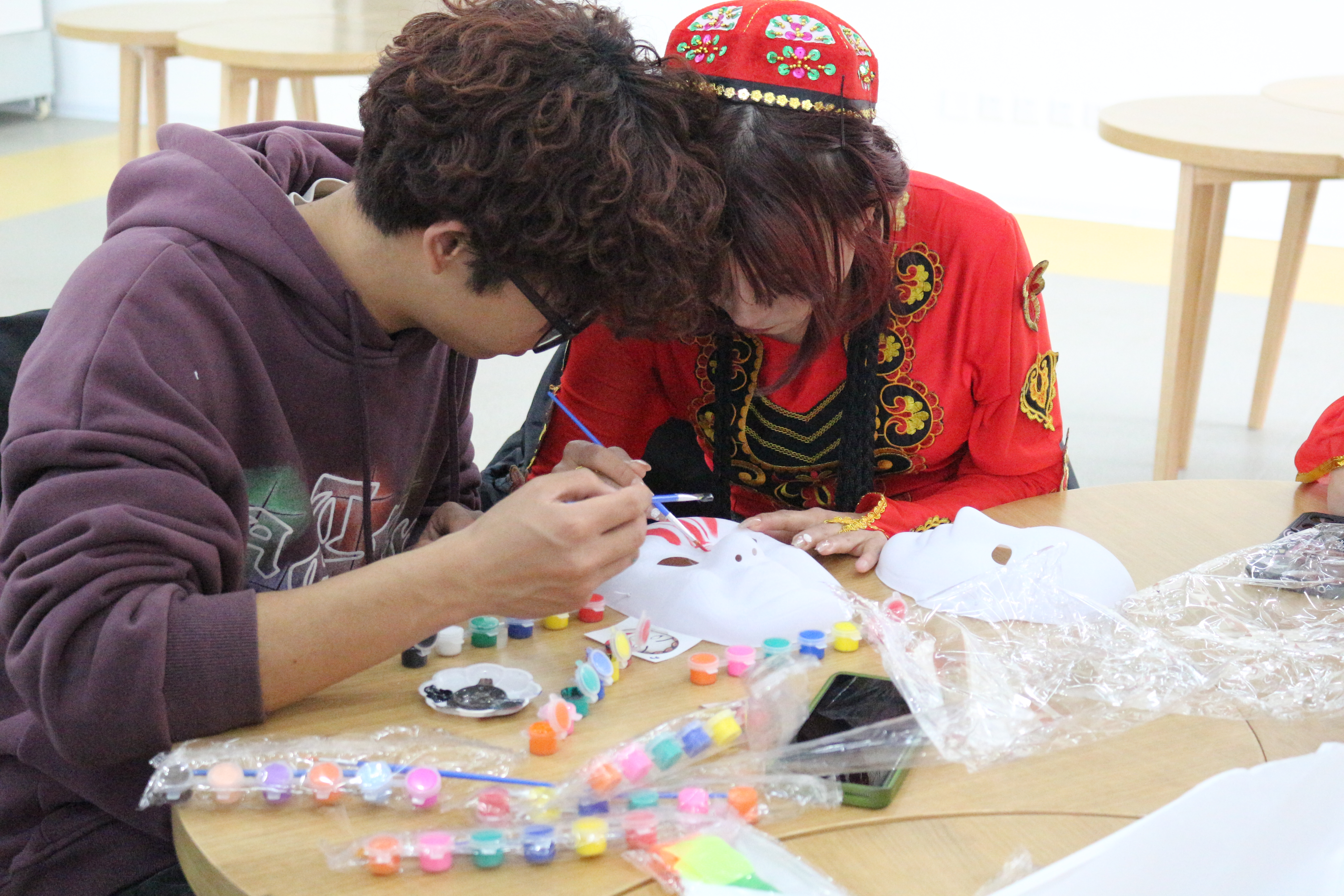 4月2日下午,在学院“一站式”学生社区服务中心开展了以“民族团结一家亲,同心共筑中国梦”为主题,由不同民族学生参与的系列文化活动。在少数民族辅导员木尼热和阿卜老师的带领下,同学们积极参与到“京剧脸谱彩绘”、“手绘纸鸢”等特色活动中来。学院党委统战部、学生工作部相关负责同志也一同参与了此次活动。