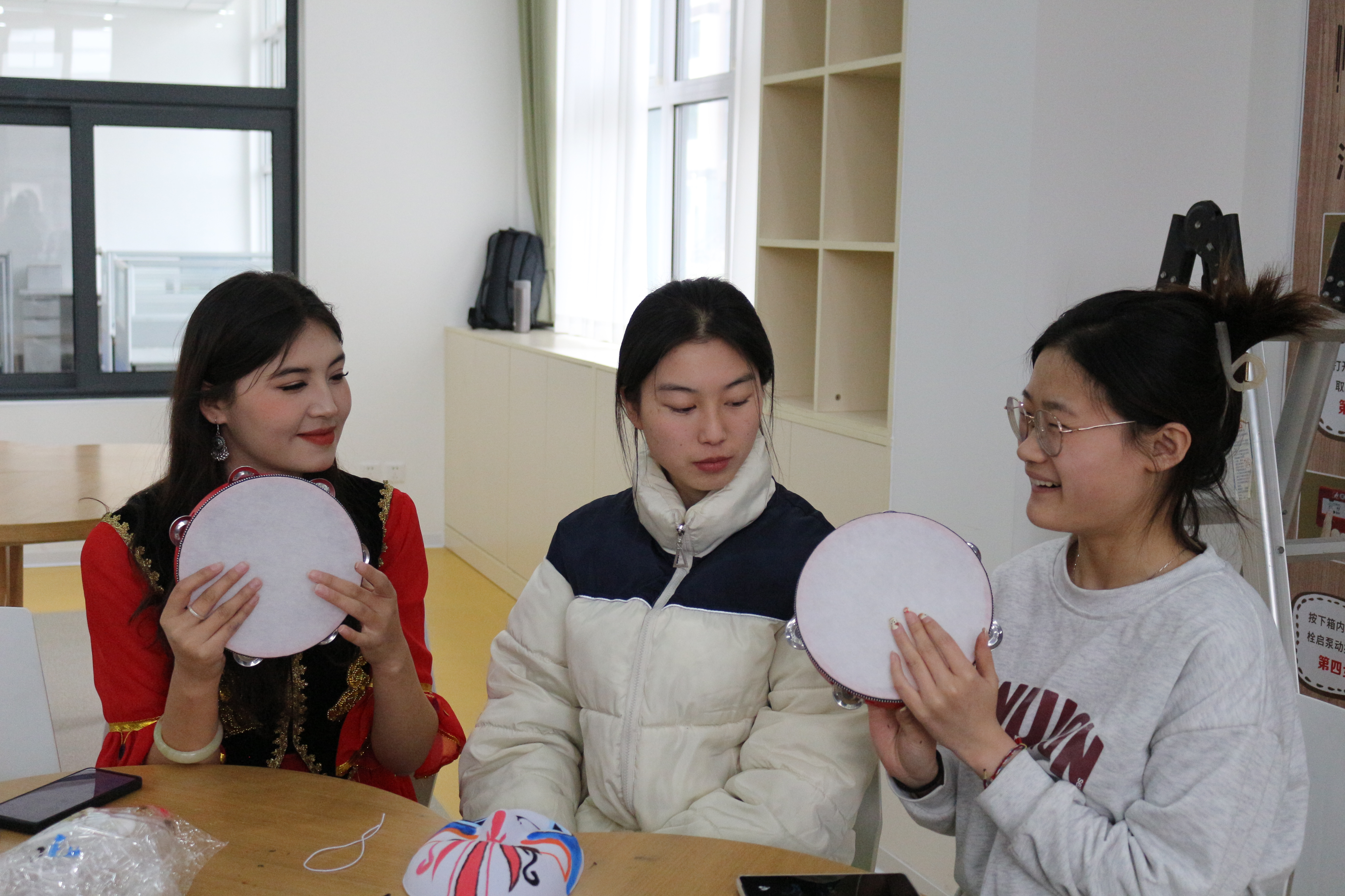 少数民族学生教汉族学生打手鼓,同学们在欢声笑语之下,一起感受鼓点音乐的魅力,也以此为友谊的纽带,留下了一份属于彼此的珍贵回忆。   通过本次活动,增进了不同民族学生间的相互了解,在文化熏染和潜移默化中,积极营造了“民族团结一家亲,同心共筑中国梦”的良好氛围,强化了平等、团结、互助、和谐的民族关系。在校园文化月期间,学院还会开展剪纸、趣味投壶、射箭、拓印、扎染等具有不同民族特色的系列活动,通过弘扬传承中华优秀传统文化,全面增强师生铸牢中华民族共同体意识,使我院民族团结教育工作更上一个台阶。