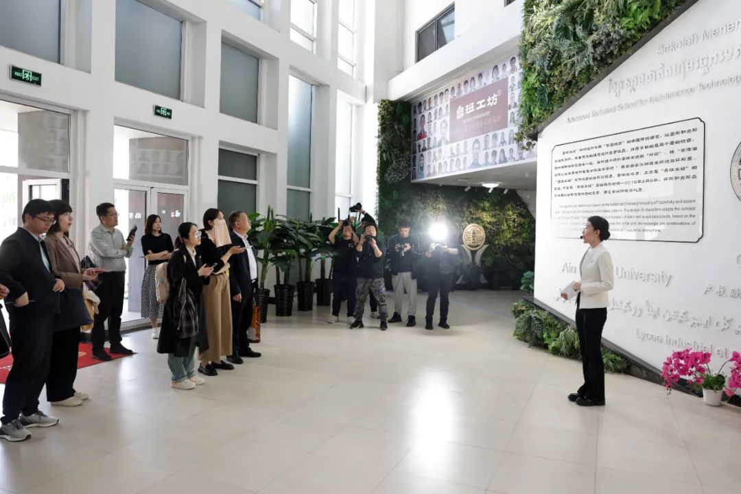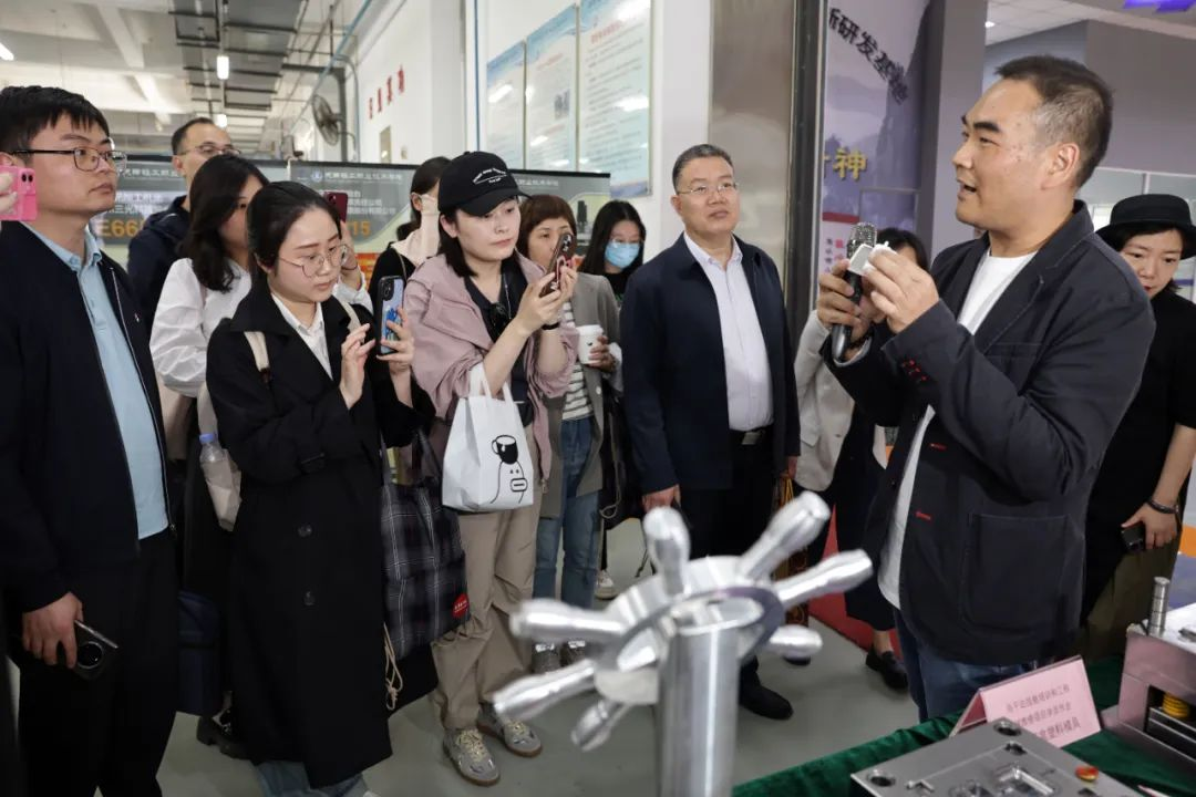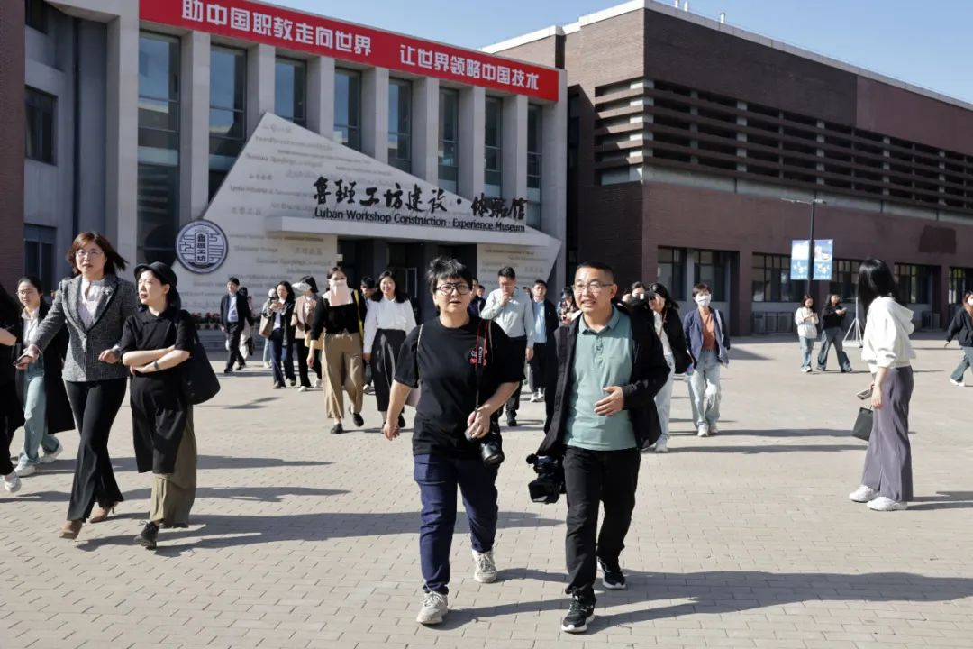 9家全国教育报联盟成员单位负责人和编辑记者、深入学院的精密模具协同创新中心,参观数控加工中心教学实训区、精密模具协同创新研发基地、史清卫国家技能大师工作室、精密检测实训室、GF精密加工实训室等,听取相关负责人的详细介绍;走进新能源技术产教融合基地,观看师生在风电实训区、智能微电网实训区上课的真实场景,沉浸式感受职业教育的课堂;在全国唯一的鲁班工坊建设•体验馆,全面了解鲁班工坊的建设历程与成果。