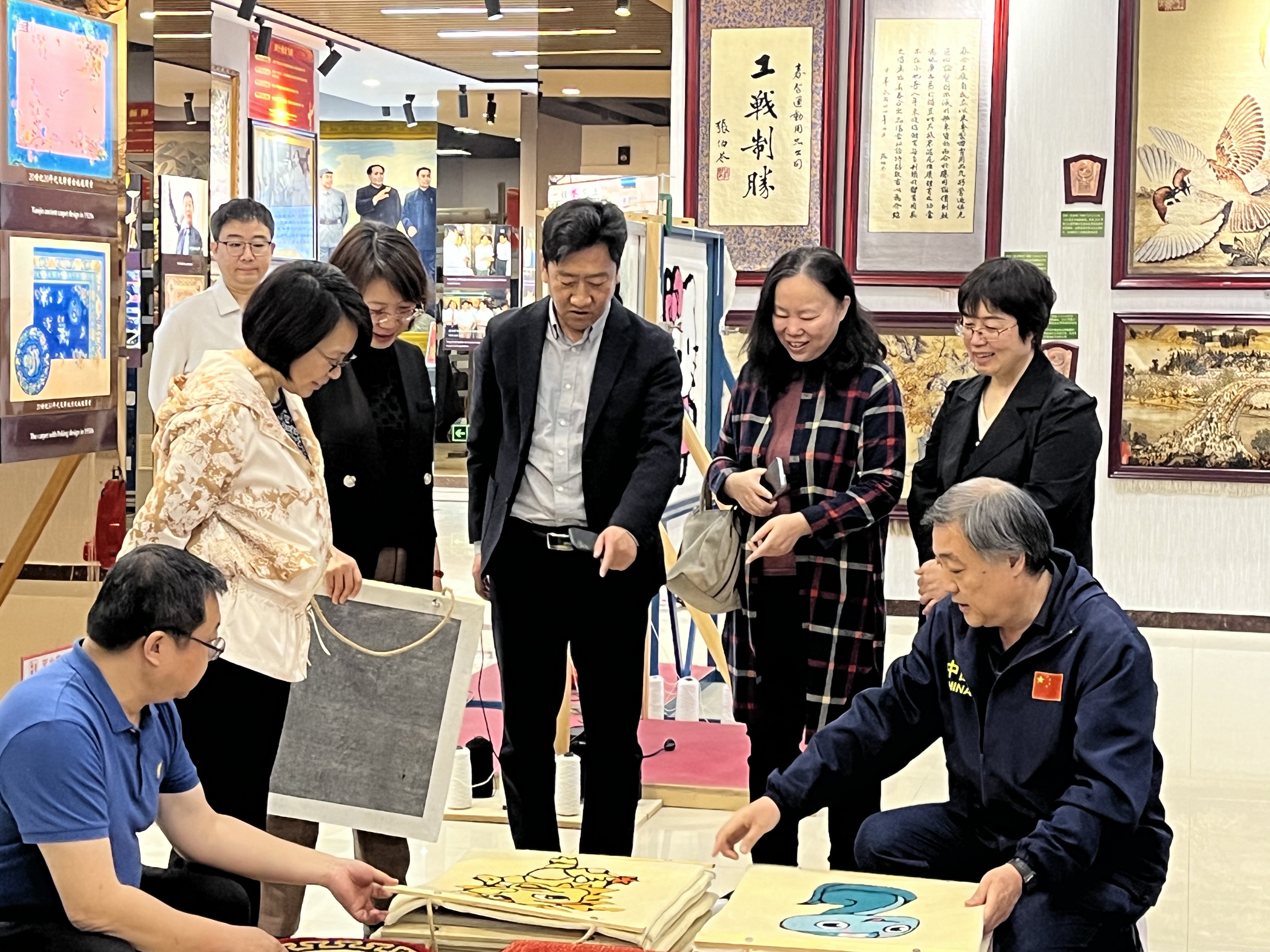 会后,隆兴集团党委书记魏建文等领导带领学院一行人,对天津地毯非遗体验中心展开参观调研。   学院多年来致力于开展校企合作、培养多样化人才、传承技术技能、促进学生就业创业,力求能够为社会输送更多既有创新意识、也有扎实功底的高素质技术技能人才,加速推动经济社会转型升级。此行,李院长带队以“访企拓岗”专项行动落实国家决策部署,精准对接企业需求,与企业领导、一线技术人员深入沟通,寻找合作契机,为学生培养和就业谋求了更多的机会。