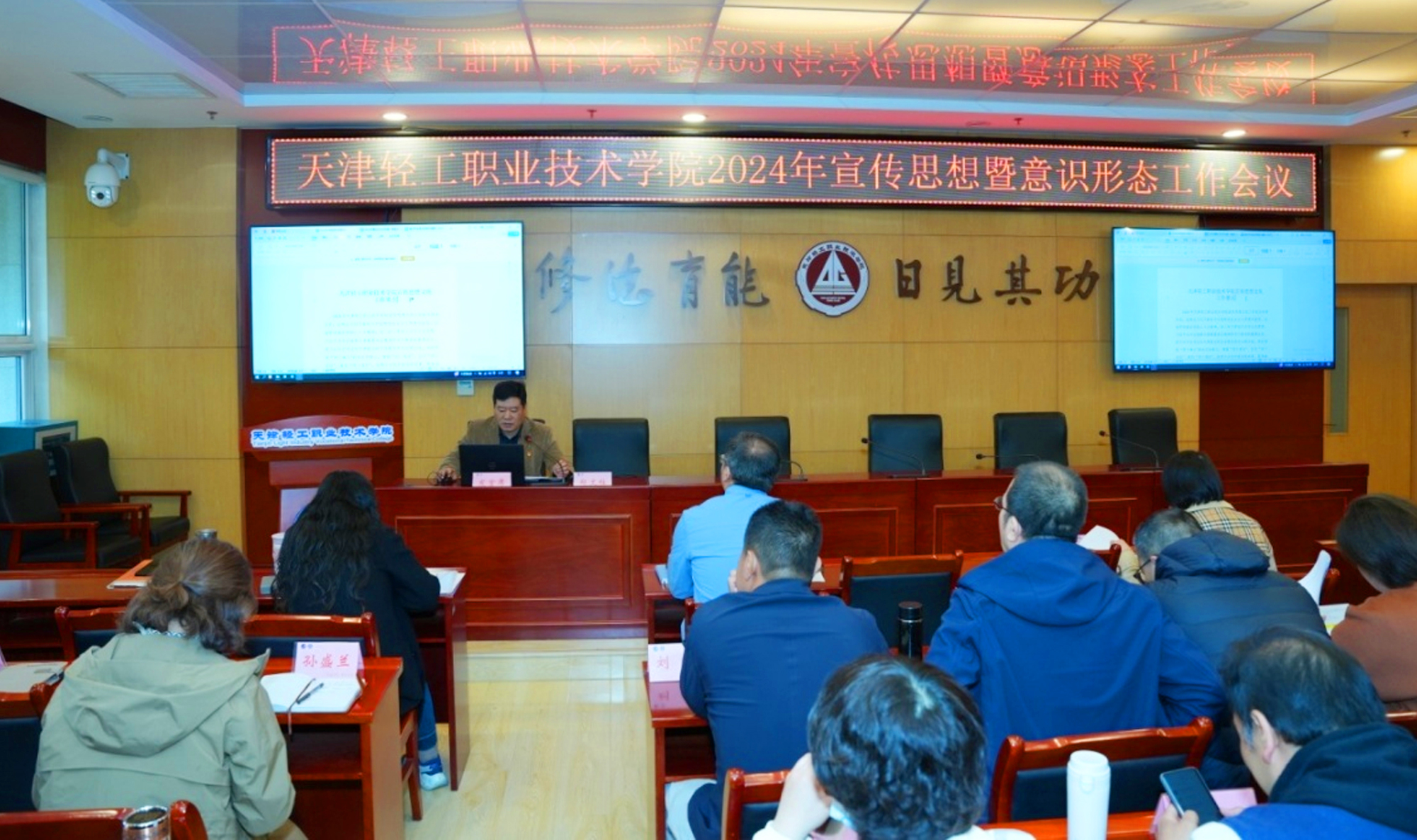 为全面贯彻落实市教委、渤轻集团党委关于意识形态工作的决策部署和工作要求,扎实做好我院意识形态工作,近日,学院党委组织召开2024年学院宣传思想文化暨意识形态工作专题学习部署会,会议由党委副书记、副院长李子铮主持,学院领导班子成员、各部室负责人、各级党组织书记参加了本次会议。