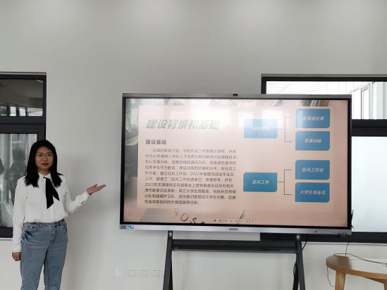 强国有我国防育人工作室贯彻“以生为本”的教育理念,以学生作为活动主体,开展丰富多彩的国防教育实践活动;联合学校征兵工作站,成立大学生预备连,一站式开展国防教育与征兵工作。通过多种方式持续深入推广国防相关信息,为学生获取国防知识、体验部队文化、了解入伍政策等提供咨询与支持。