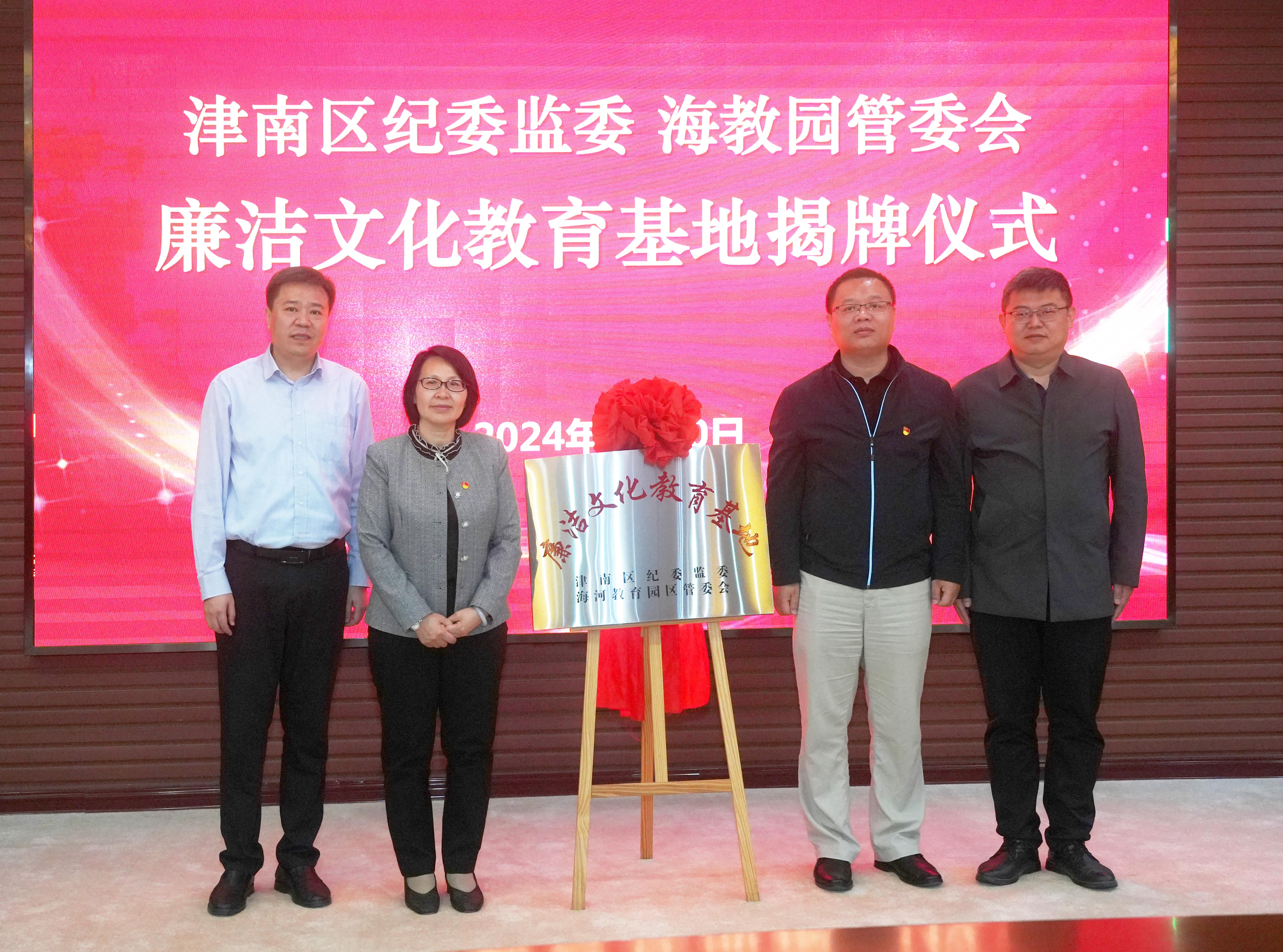 4月30日,津南区纪委监委、海教园管委会廉洁文化教育基地揭牌仪式在我院举行。海教园管委会副主任詹珽,津南区纪委副书记、监委副主任李建彬,渤轻集团纪委副书记于显岚,津南区纪委监委、海教园管委会相关部室负责同志出席揭牌仪式。学院党委副书记、院长李云梅致辞,相关职能部门和二级学院负责人参加,学院纪委书记刘利超主持揭牌仪式。