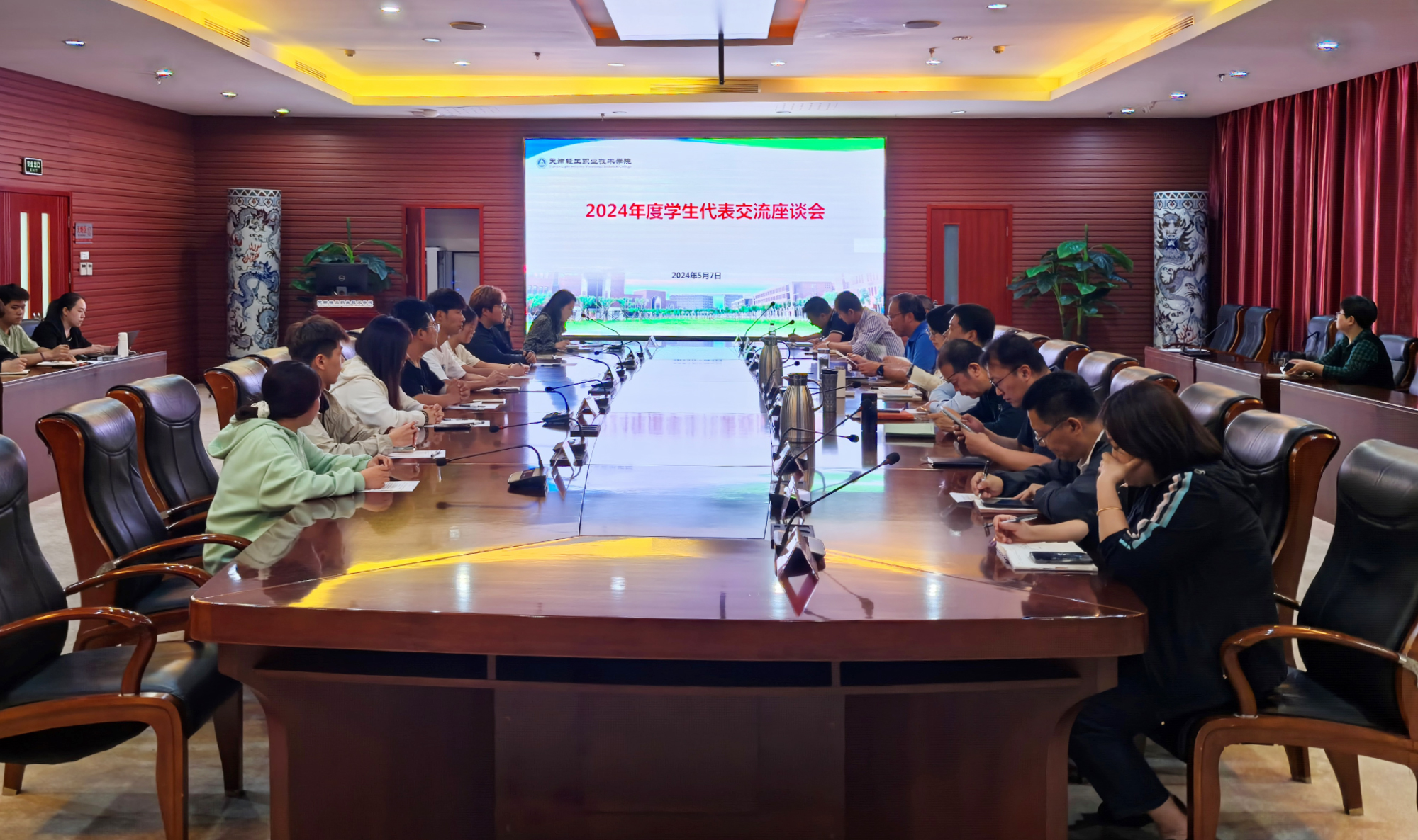 5月7日下午,2024年度学生信息员代表交流座谈会在行政楼第一会议室召开。学院党委副书记、院长李云梅,党委副书记、副院长李子铮,副院长郑文柱出席会议,教务部、学工部、后勤基建部部门负责人,各二级学院负责人,学院兼职督导教师,质量管理中心全体人员,以及八名学生代表和五名院长助理参加了座谈会,座谈会由质量管理中心副主任史楠主持。