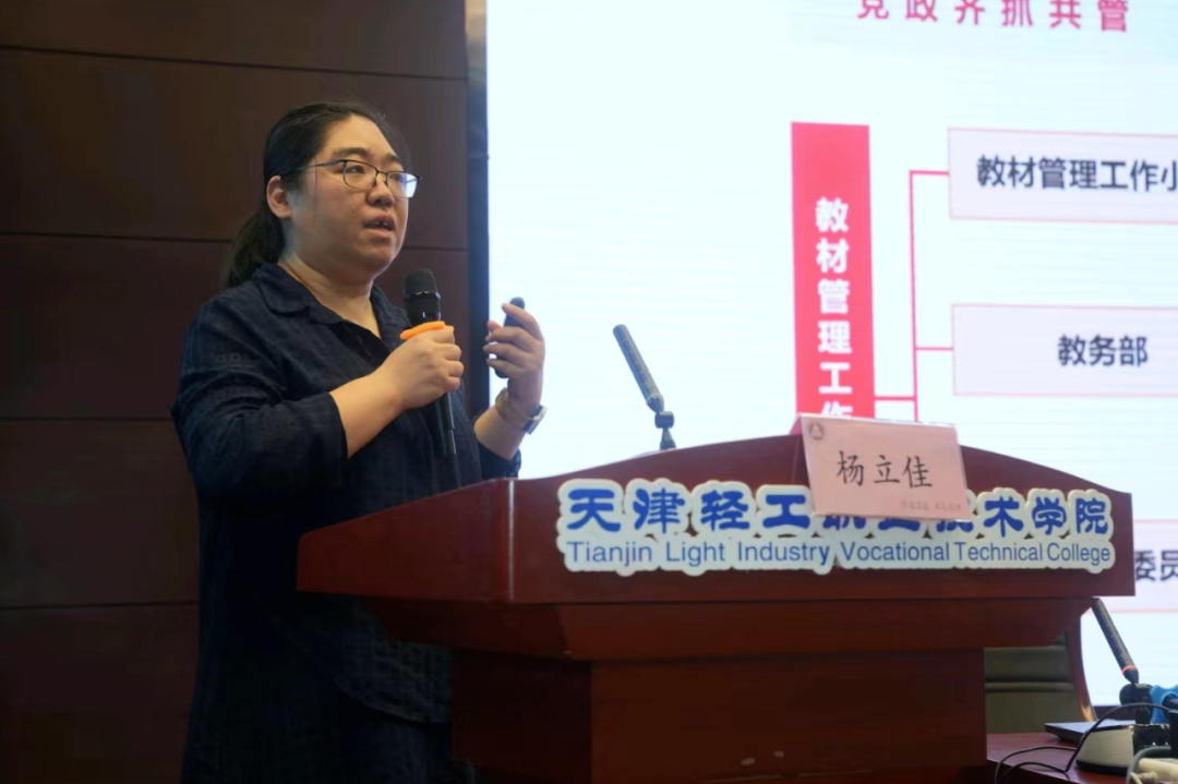 天津交通职业学院教务处副处长杨立佳以《“新常态、新形态、新模态”教材管理实践与探索》为主题,从“新常态管理,规范教材建设”“新形态教材,引领教材创新”“新模态教学,实现高效课堂”三个维度进行了详细地讲解,对教材教法顶层设计到具体实施工作进行了谋划,拓宽了教师们的视野。    天津交通职业学院教务处副处长杨立佳