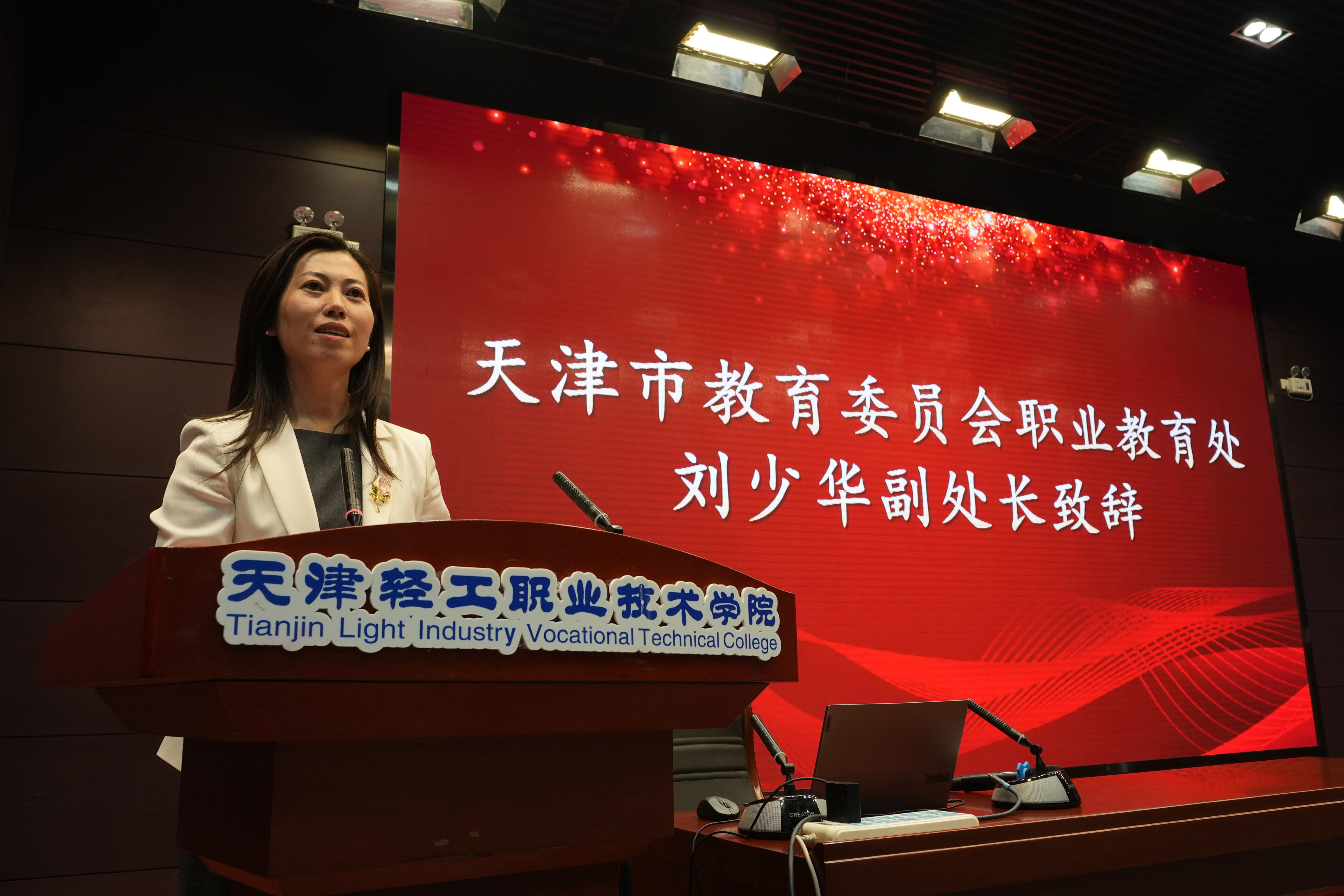 领导致辞   天津市教育委员会职业教育处副处长刘少华的致辞从加强联盟组织建设、健全机制,明确任务和目标;强化对新经济、新业态、新技术、新职业的研究,服务教材建设及对接产业和岗位需求的变化;加强成果产出,赋能职业教育关键能力的提升,助力提升职业教育新质生产力等几个方面的内容提出了建议,为接下来职业教育教材教法研究基地联盟建设工作指明了方向。    天津市教育委员会职业教育处副处长刘少华致辞