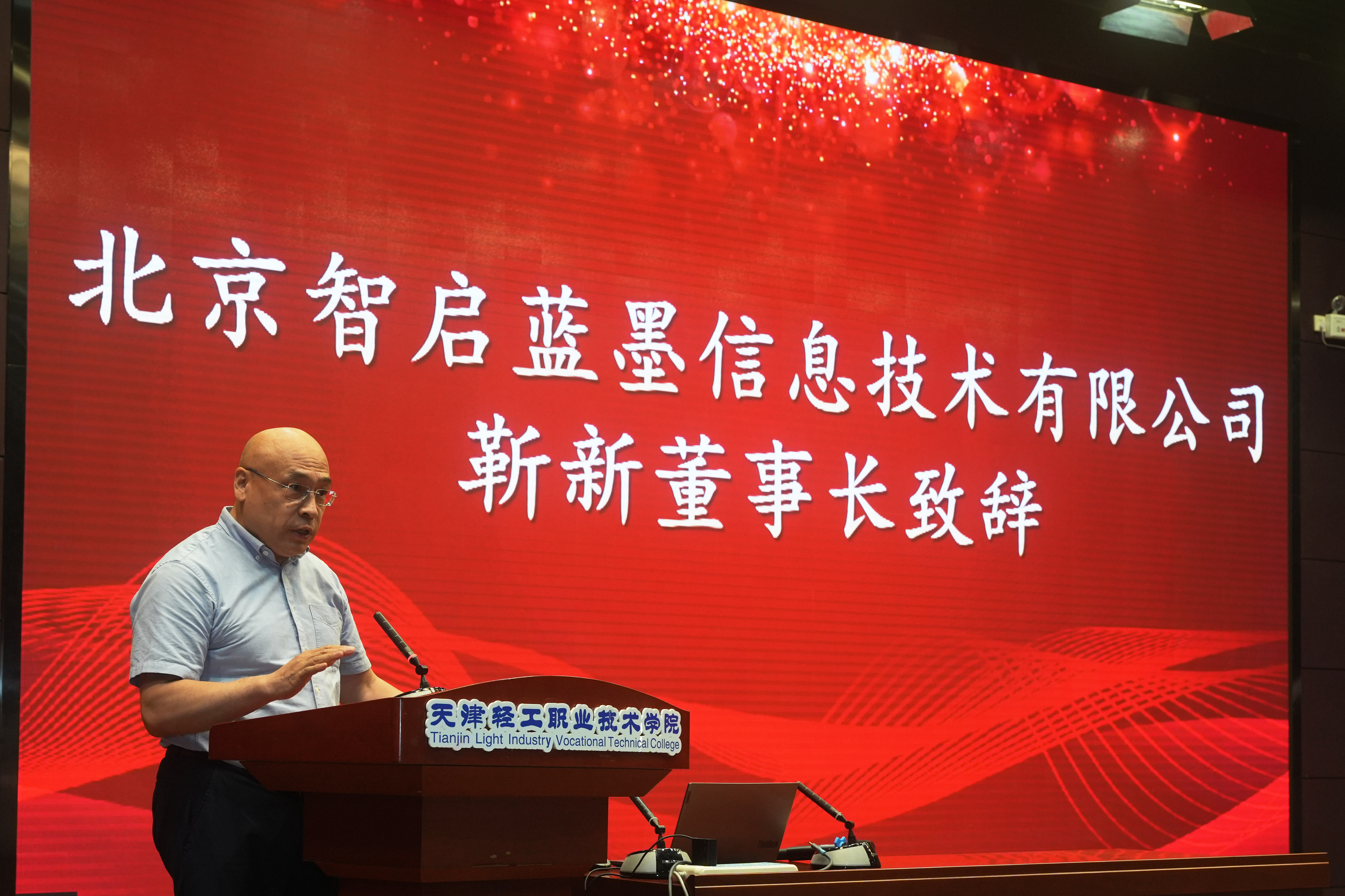 北京智启蓝墨信息技术有限公司董事长靳新在致辞中指出,要加强人工智能技术与教材、教法深度融合,同时也提出了未来AI将在学生评估技术上有重大突破,为提高技术技能人才培养质量提供保障。    北京智启蓝墨信息技术有限公司董事长靳新致辞   授牌仪式   靳新董事长与商桑院长为新利18平台、天津交通职业学院、天津滨海职业学院、天津生物工程职业技术学院、天津滨海汽车工程职业学院、天津市机电工艺技师学院、天津市红星职业中等专业学校颁发职业教育教材教法研究基地联盟铜牌。    职业教育教材教法研究基地联盟授牌仪式