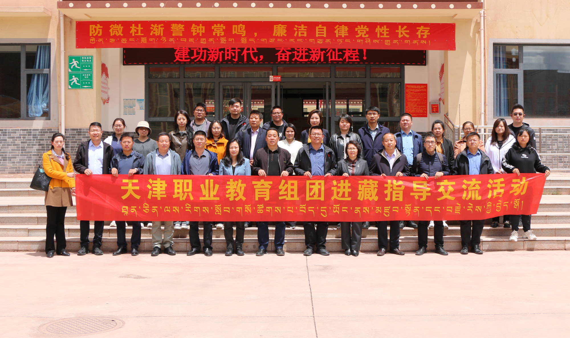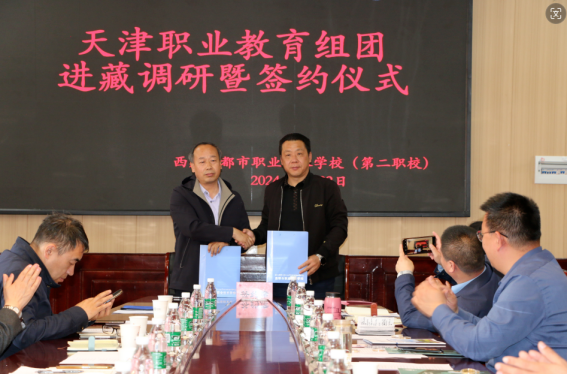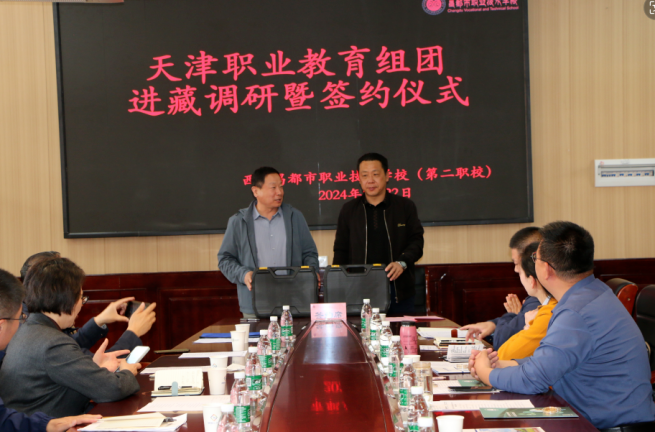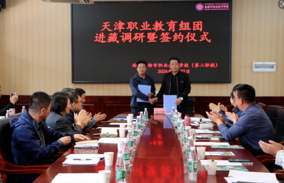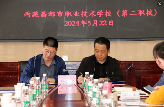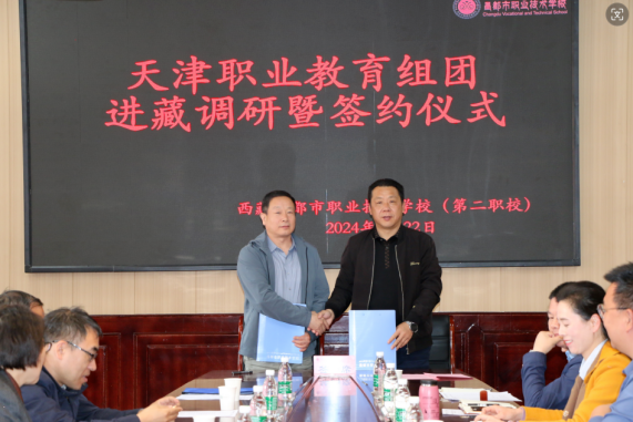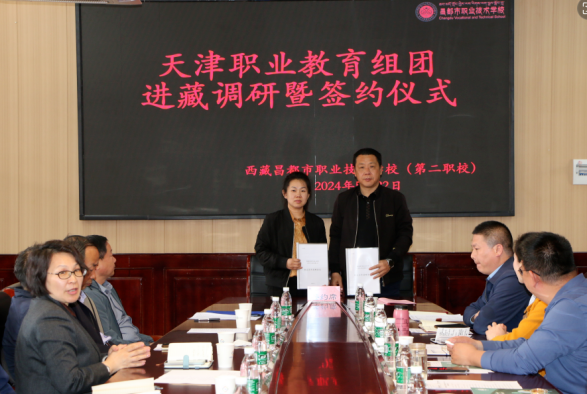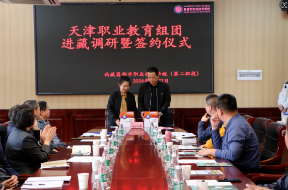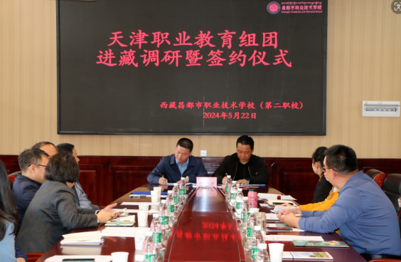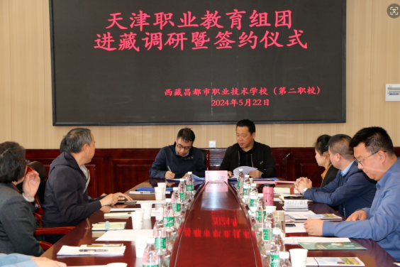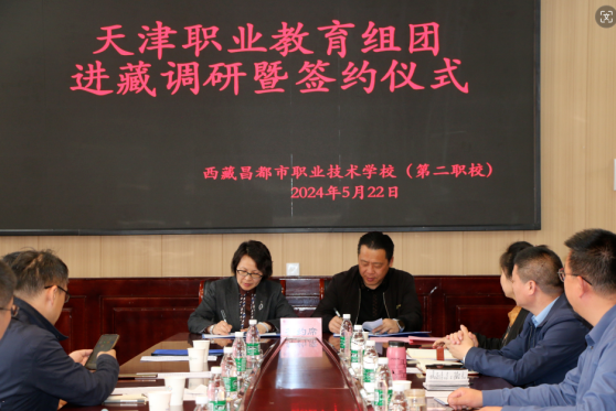 5月22日,天津职业教育专家团队一行由新利18平台院长李云梅带队,在天津援藏干部、昌都市教育局党组副书记、副局长邵树斌同志的陪同下与昌都职校开展调研暨校校、校企签约仪式。参加签约仪式的领导有新利18平台院长李云梅、天津职业技术师范大学战略办主任李伟华、天津生物工程职业技术学院党委书记杨树峰、天津城市建设管理职业技术学院党委书记李清彬、天津国土资源和房屋职业学院院长吴佳丽、天津第一商业学校校长马传山、天津圣纳科技有限公司甘青藏区域部长刘明、北京智启蓝墨信息技术有限公司津甘青藏区域经理郭捧亮、山西华兴科软有限公司项目经理高燕等,会议由天津援藏干部、昌都职业技术学校副书记、副校长吴英主持。