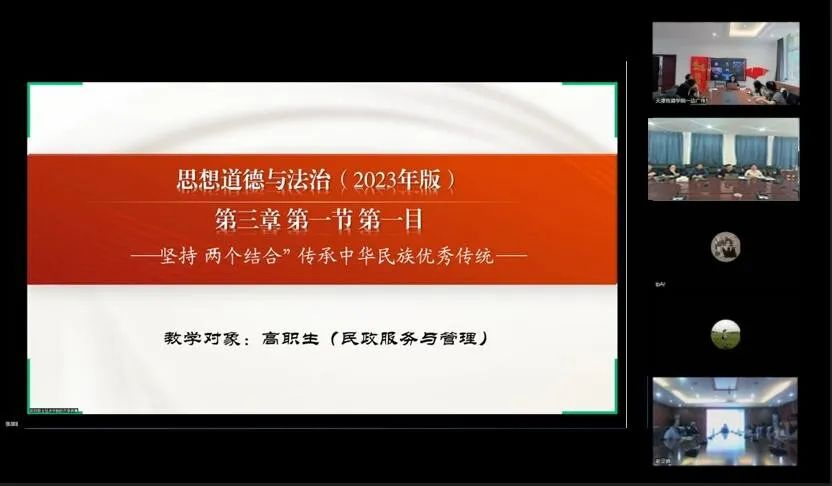 为深入贯彻落实习近平总书记关于学校思政课建设的重要指示精神,提升思政课教师教学能力,推动思政课高质量发展,5月29日,我院与天津铁道职业技术学院、和田职业技术学院、天津市第二期“津石榴”思政支教团以线上线下相结合的形式,联合开展了主题为“学习习近平总书记对学校思政课建设重要指示精神 上好高质量思政课”的集体备课会。